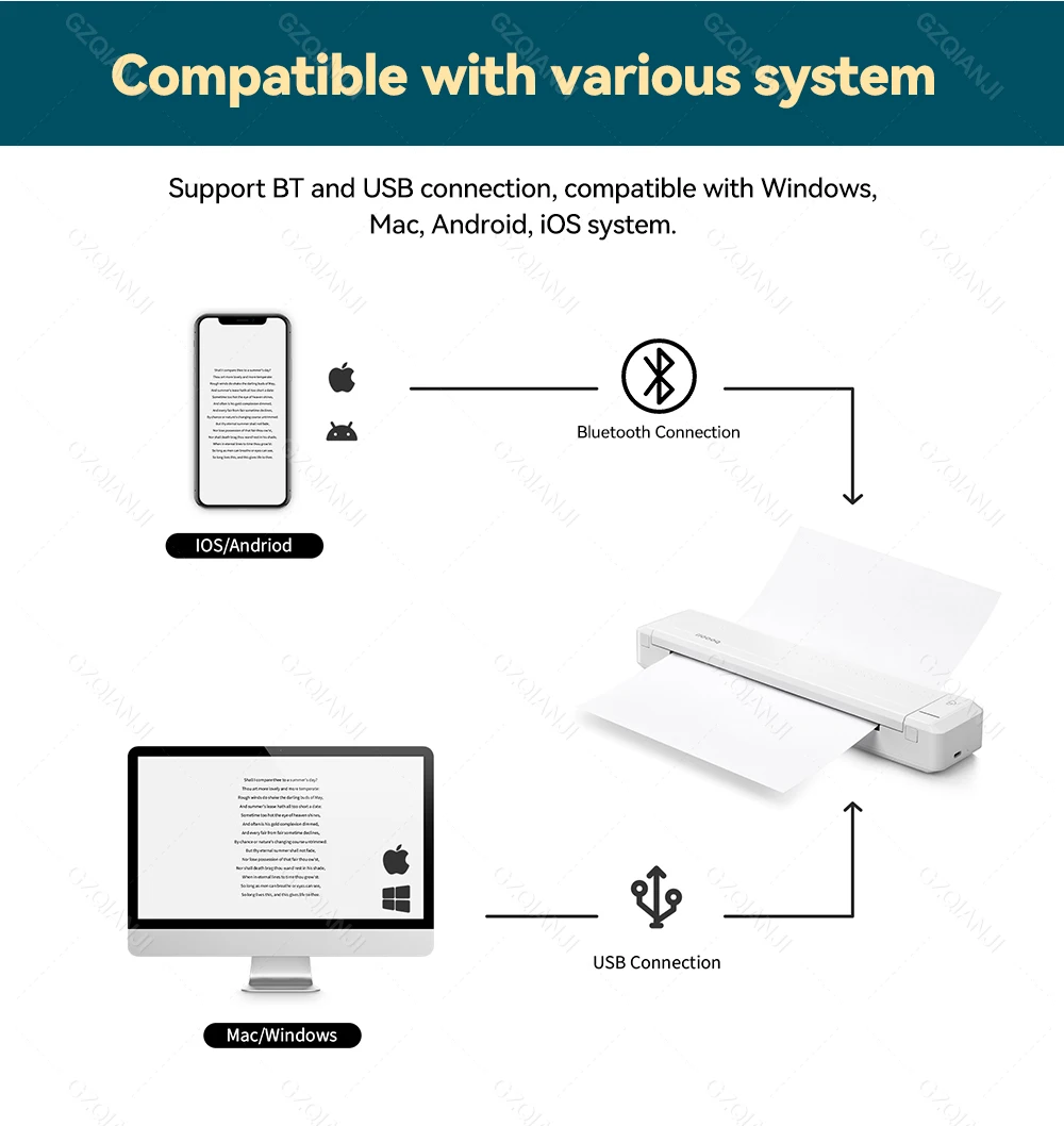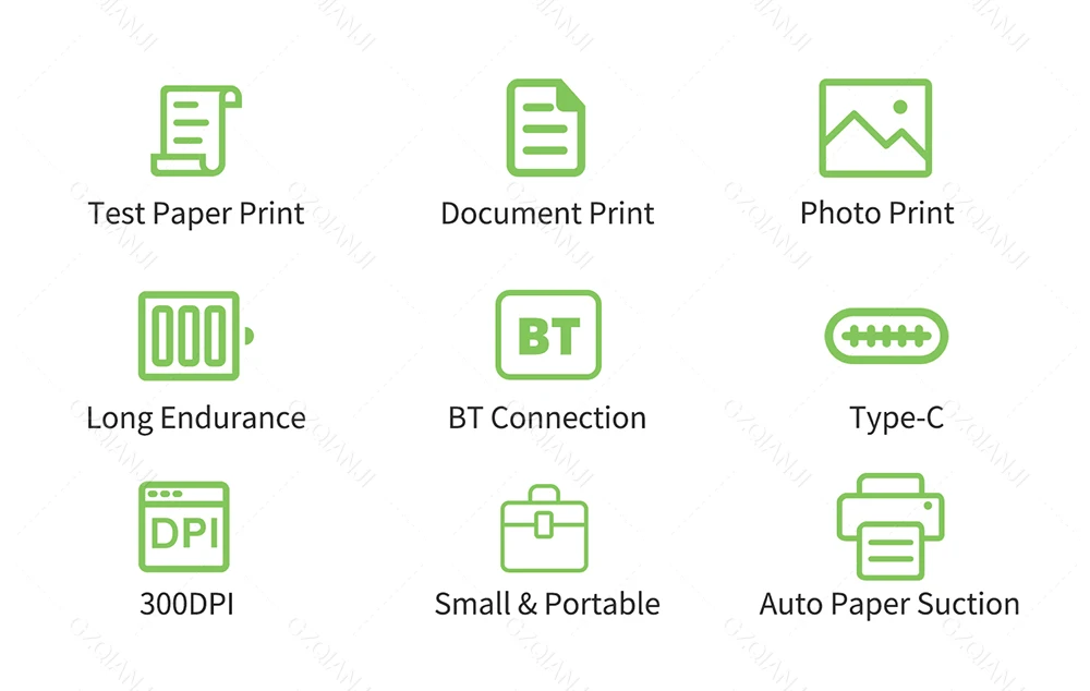 Широкое применение: A4 Мобильный принтер, идеально подходит для печати PDF файлов, тестовой бумаги, веб-страницы, контракта, фотографии, изображения и т. Д. Отличный помощник для учебы и офисной работы.
