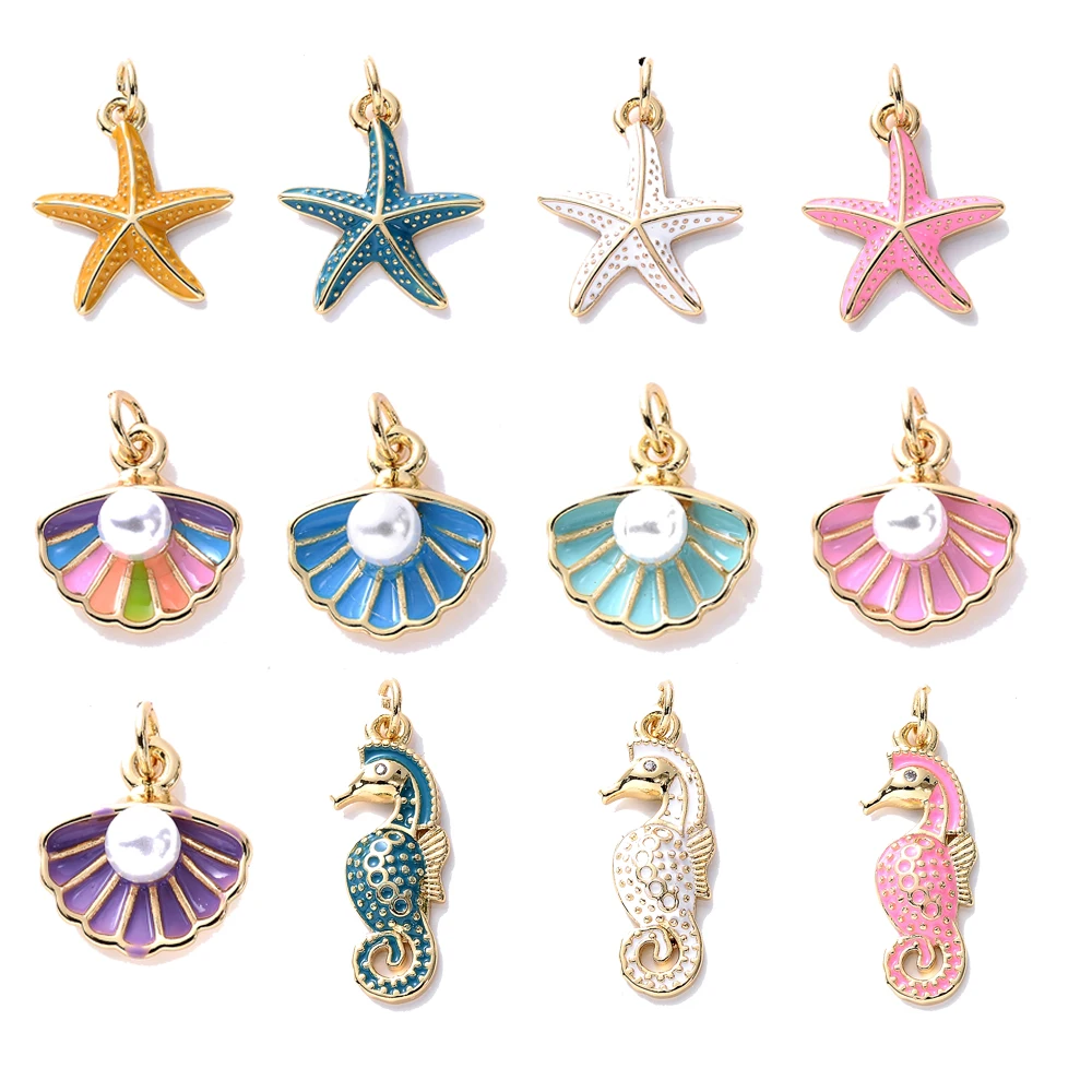 Название: карамельные Морская звезда, ракушка, морская лошадь, подвески, ожерелье, серьги, медь, капельное масло, эмаль, кулон, сделай сам, пляжные подвески, ювелирное изделие