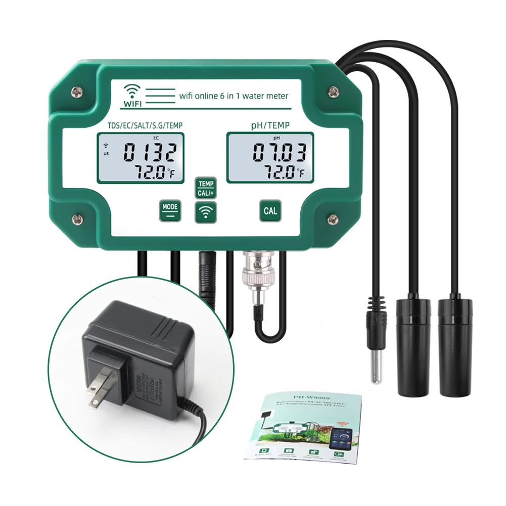 6 в 1:Многофункциональный тестер качества воды, мониторинг PH в реальном времени,Общее содержание растворенных твердых веществ, EC, SG, соленость, температура воды, делает ваше использование более безопасным.