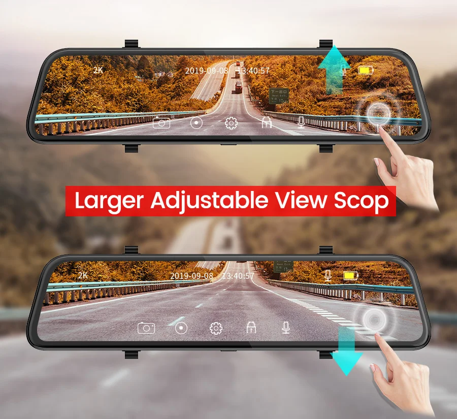 Это все новые технологии для зеркала заднего вида dvr. A38 оснащен этой передовой технологией потоковой передачи данных, делает угол заднего вида вождения более широким, это тройной широкий угол обзора, а затем традиционное зеркало.
