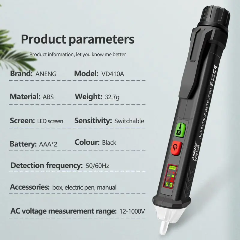 VD410A Бесконтактный цифровой детектор напряжения AC/DC 12V-1000V тестер Индукционная электрическая ручка с фонариком
