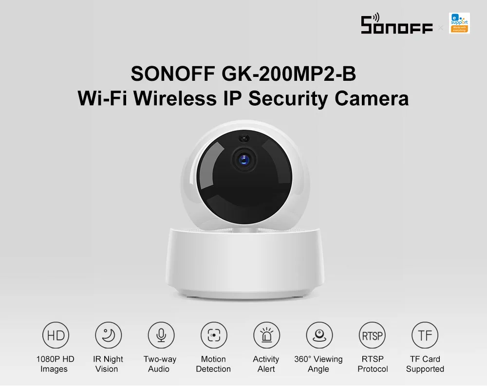 SONOFF представляет уникальный новый продукт, который отличается от других продуктов SONOFF-Беспроводная ip-камера безопасности, что означает, что линейка продуктов SONOFF продвигает новый уровень с новой надежной ip-камерой. Эта камера обеспечивает выдающееся разрешение full HD 1080P и широкий угол обзора 360 °, чтобы сохранить ваш дом в безопасной среде, днем или ночью. Функции ИК ночного видения, обнаружения движения и мгновенного оповещения о движении и двухстороннего аудио, который всегда позволяет вам узнать, что происходит в вашем доме в любом месте, в любое время. Поддерживает TF карту макс. 128G для хранения более драгоценной памяти. Кроме того, доступно подключение к сети Wi-Fi и Ethernet.