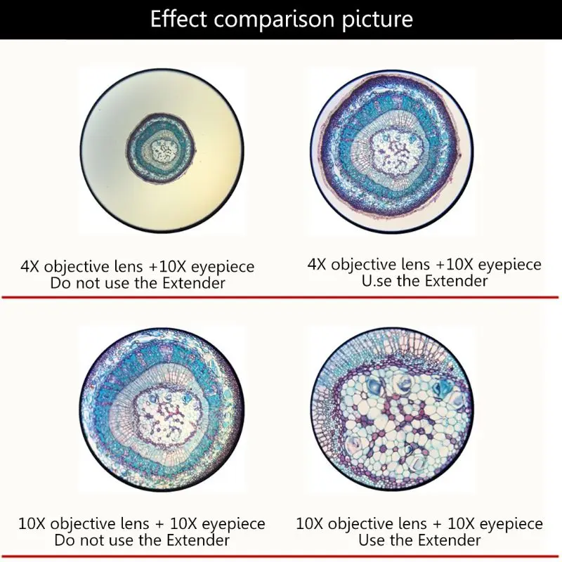 Функция: увеличение мощности в два раза (в вашем микроскопе общее увеличение составляет 100X, оно увеличится до 200x после использования)
