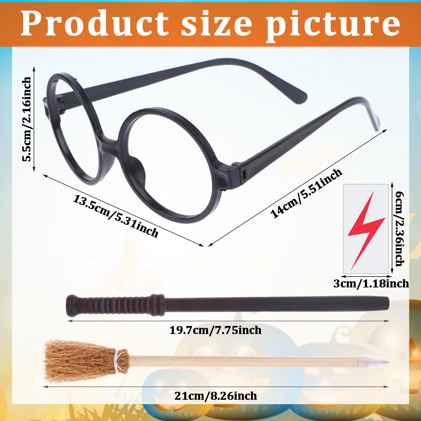 [То, что вы получите]: вы получите 40 шт. волшебных палочек, вечерние сувениры, в том числе 10 очков в оправе + 10 метлы + 10 палочек + 10 молний тату-наклеек.