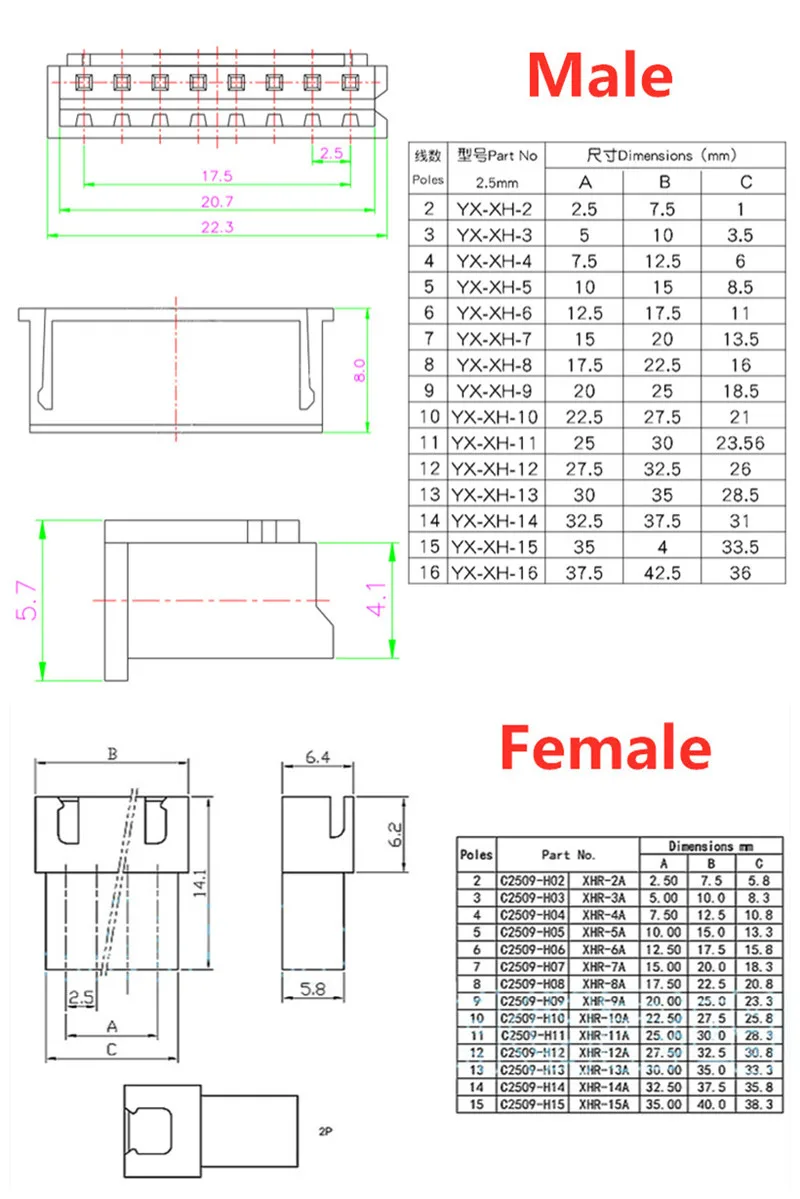 Название: JST-PH 2,0 XH 2,54 SM2.54 2P-6Pin штекер Женский Разъем провода