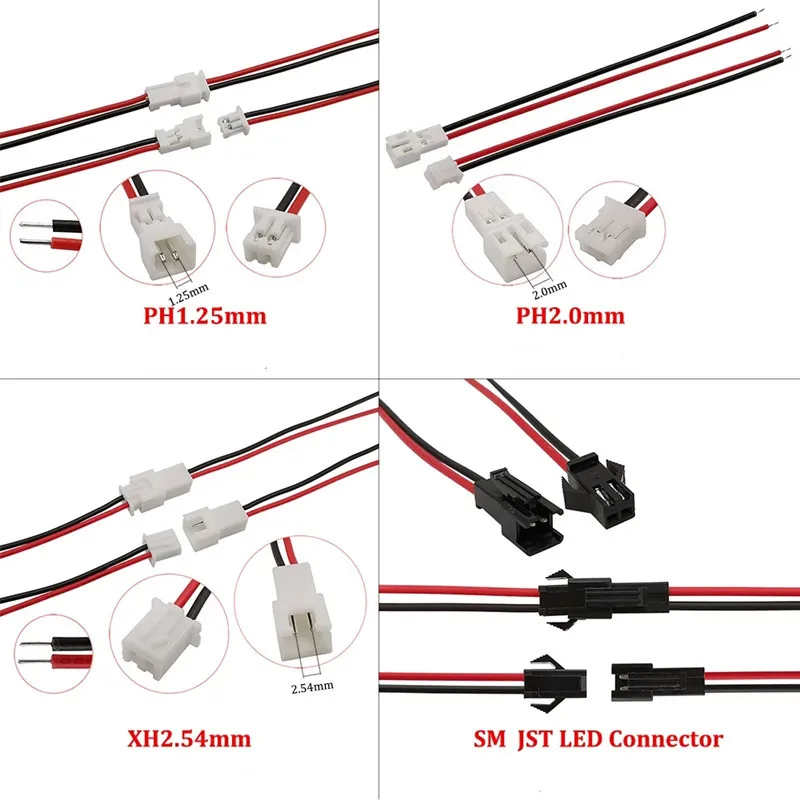 Спецификация провода: JST 1,25 мм с кабелем # 28AWG, PH 2,0 мм XH 2,54 мм и SM 2,54 мм с кабелем # 26AWG