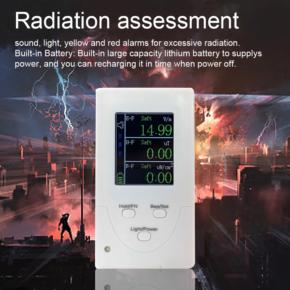 2 в 1 Функция измерения:Этот продукт является продуктом 2 в 1 для проверки ядерной радиации и электромагнитного излучения. Он не только поддерживает высокоточное измерение ядерной радиации, но также может быть немедленно переключен на режим измерения электромагнитного излучения.