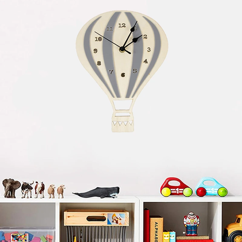 Настенные часы для детей, бесшумные, не тикают, деревянные, бесшумные, Мультяшные, воздушные шары, часы для детей, спальни, детской комнаты, офиса, кухни, украшения