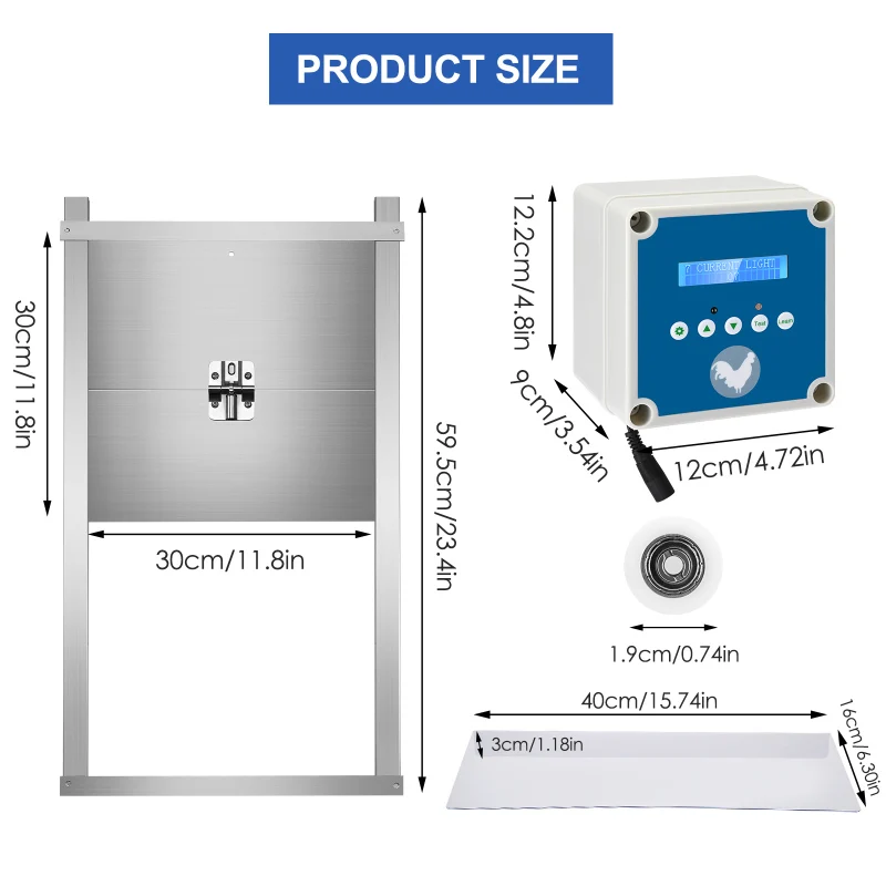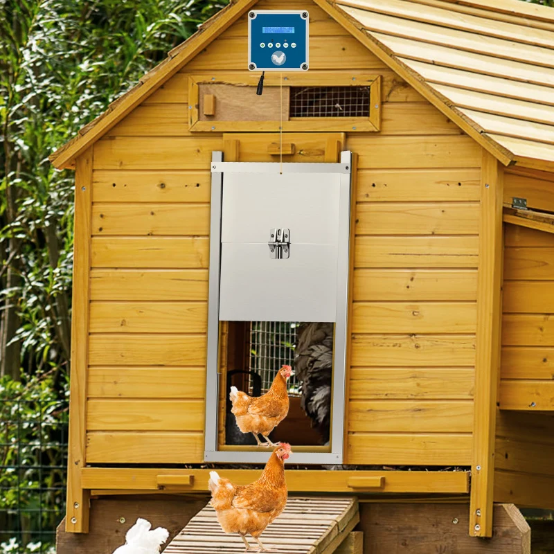 Автоматическая дверь курятника с датчиком таймера и светильник, с ЖК-экраном, батареей и питанием