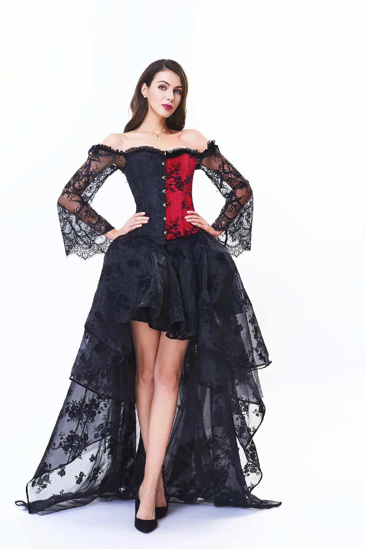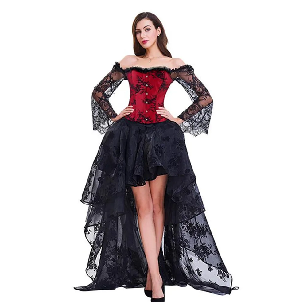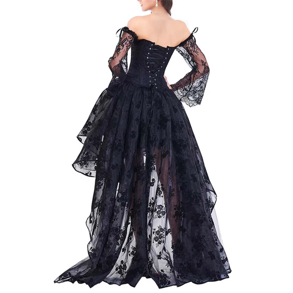 Черный сексуальный Корсеты Топы юбки набор стимпанк корсетное платье бюстье готический корсетный женский кружевной с открытыми плечами Цветочные Вечерние