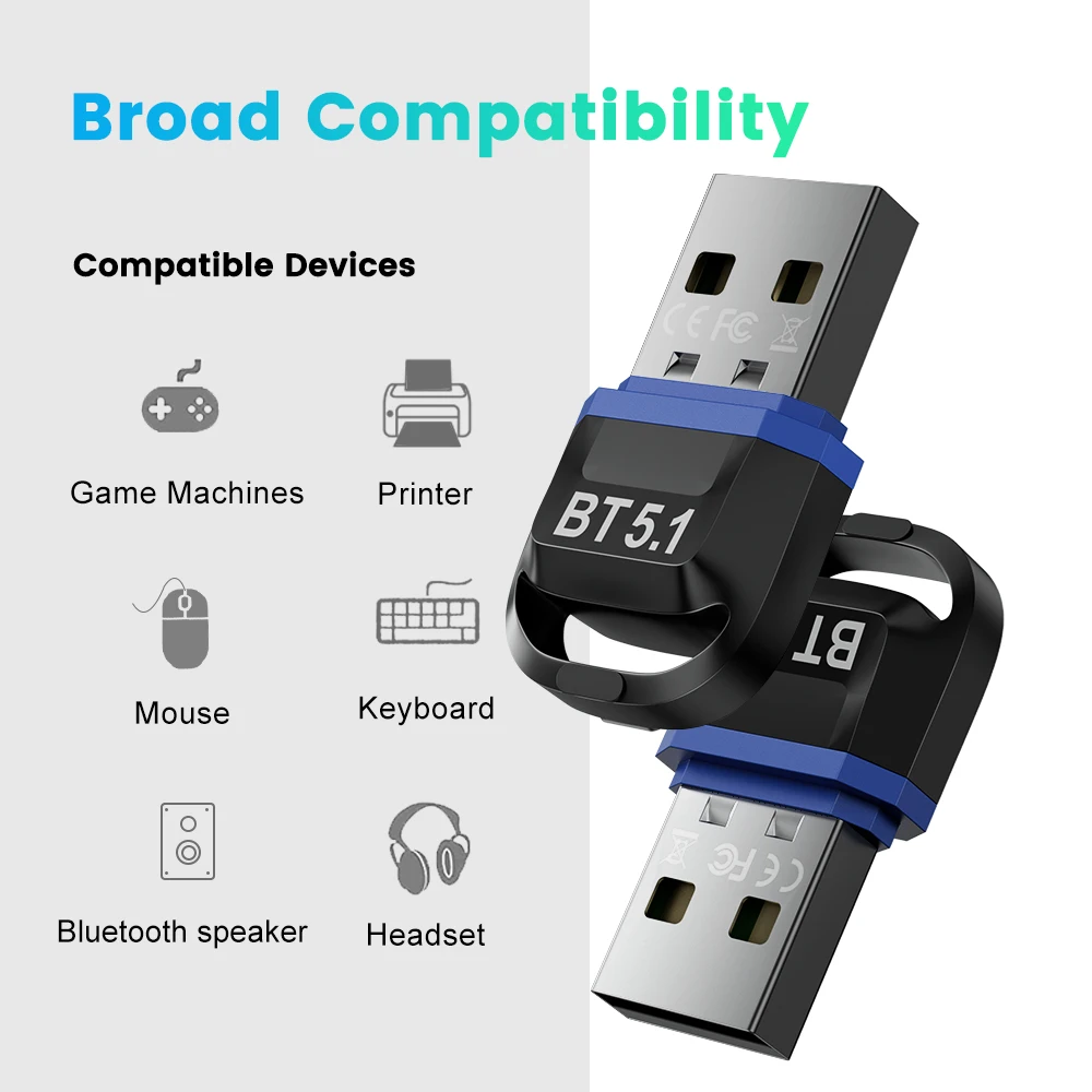 Донгл Bluetooth 5,1 имеет более стабильное соединение со скоростью передачи данных до 3 Мбит/с. Конфигурация Bluetooth с низким энергопотреблением (BLE) и Двухрежимная передача Bluetooth могут получить более высокую скорость передачи данных. Расстояние передачи может достигать до 20 м в открытом месте.