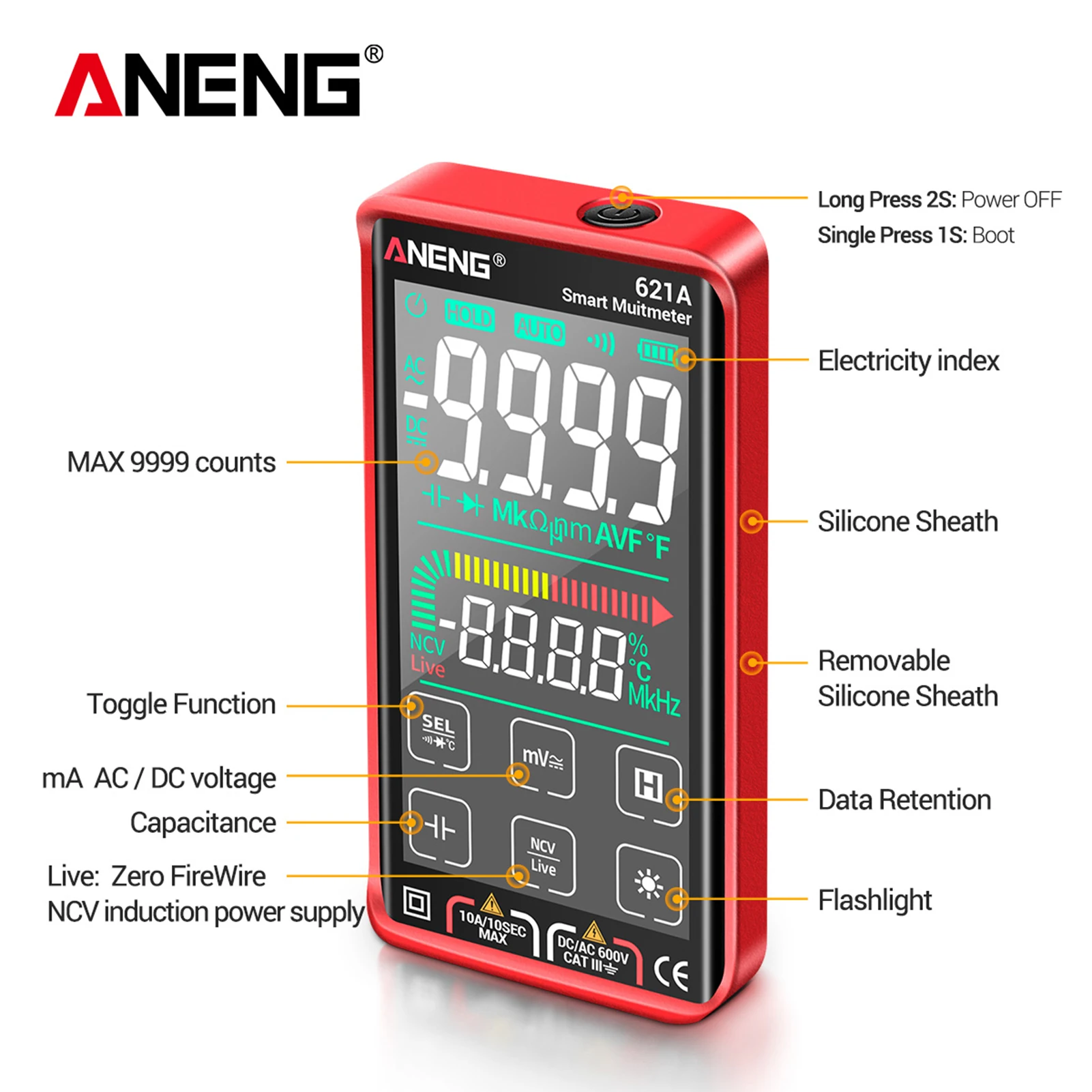 Безопасная Работа: Встроенный предохранитель для защиты от перегрузки, умная защита от ожогов. Соответствует стандарту перенапряжения постоянного/переменного тока 600 В CAT III и двойной изоляции.
