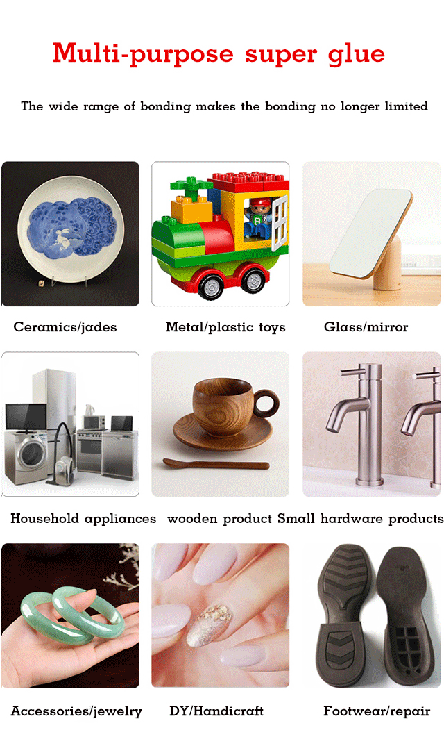 Способ хранения: хранить в прохладном и сухом месте, избегать воздействия солнца Применение продукта: склеивание керамики, стекла, резины, нефрита, дерева, металла и т. Д.