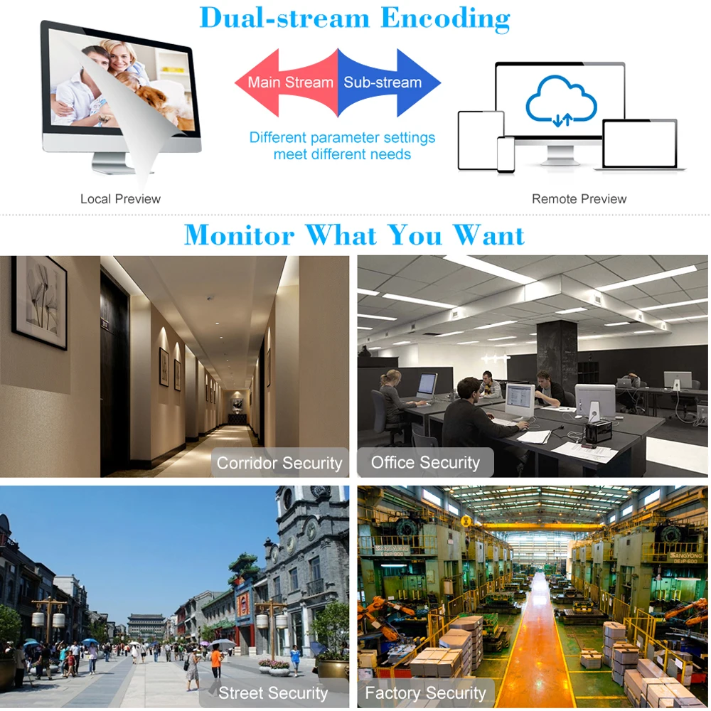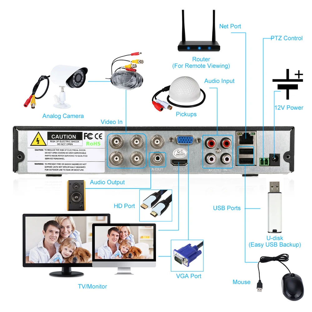 * CVI TVI NVR HVR AHD 5-в-1 функции, поддержка как аналоговая камера высокого разрешения и аналоговый вход для камеры.