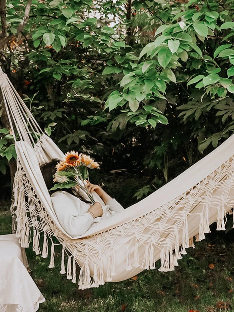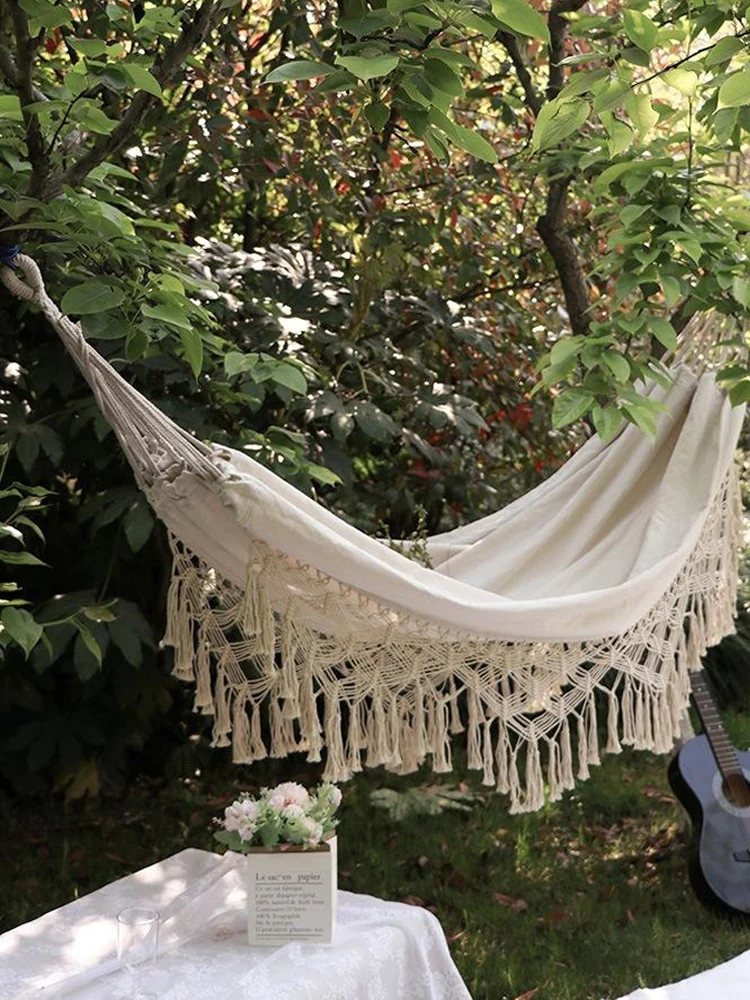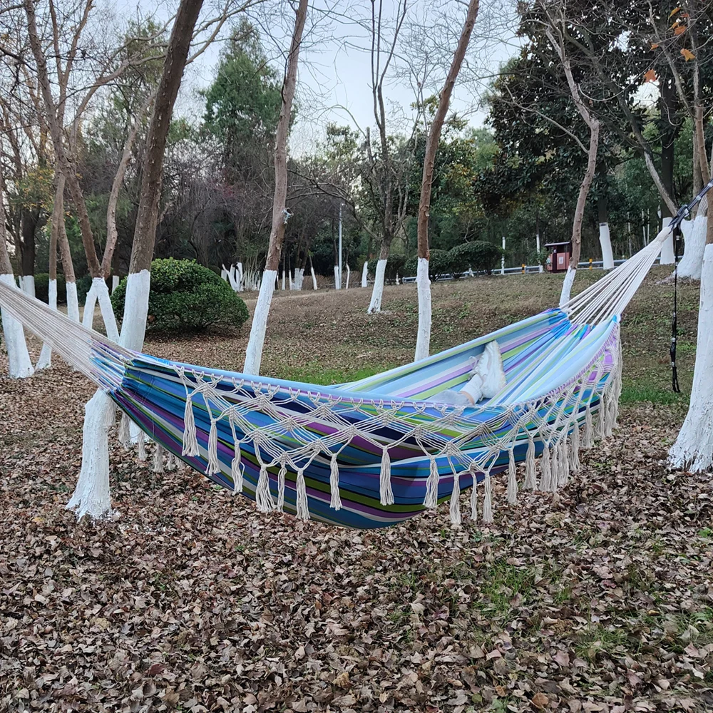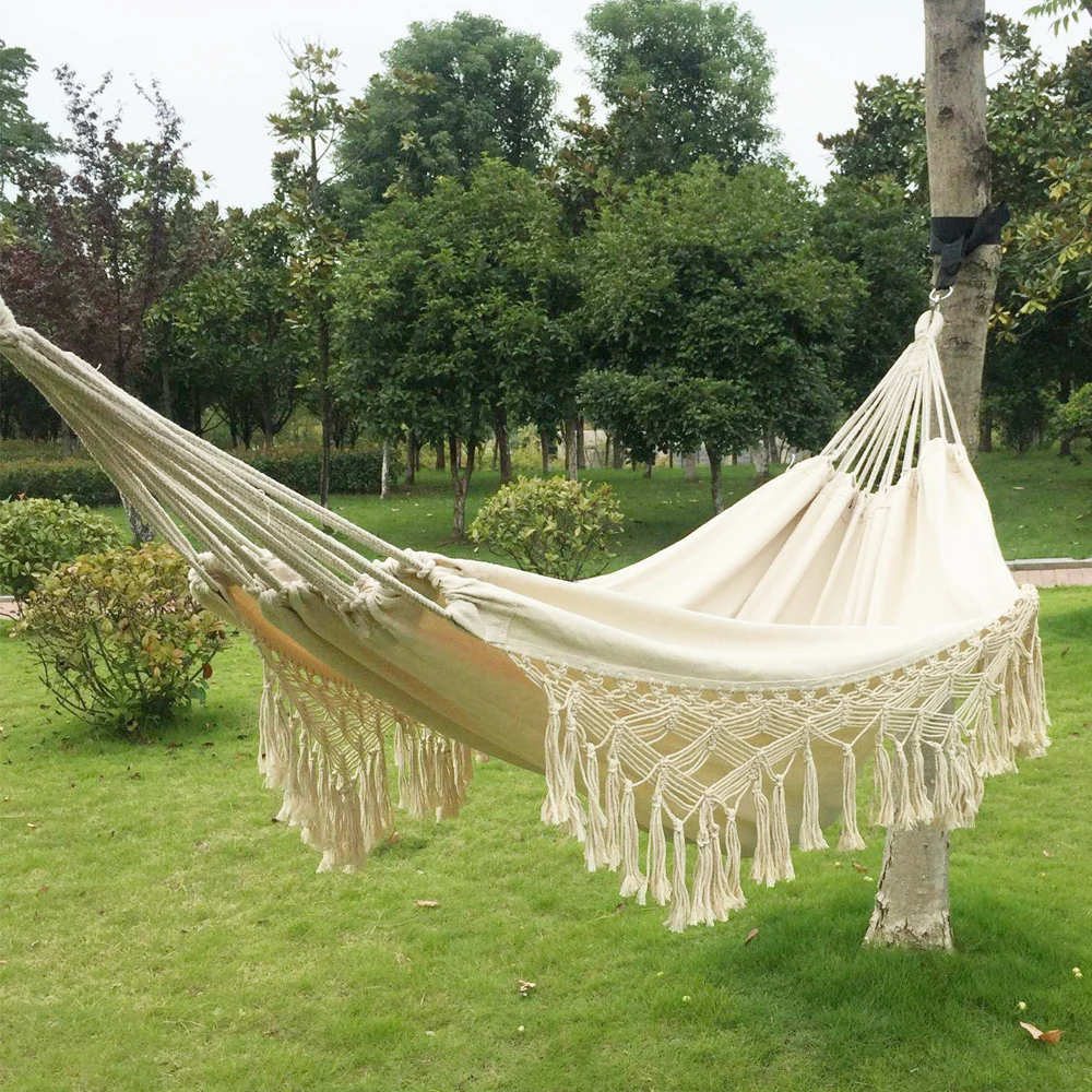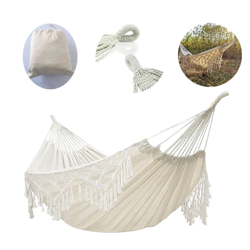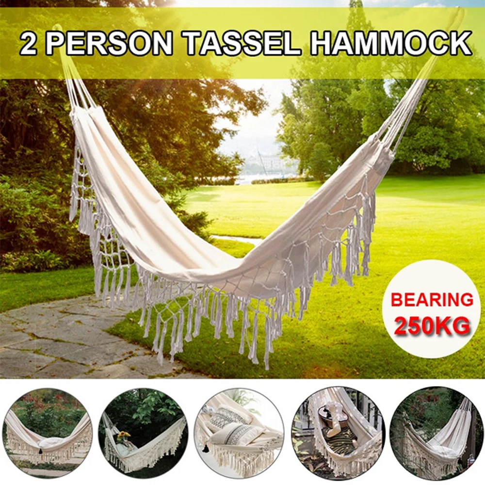 ОписаниеLighten Up 2 Person Maximum 250KG Hammock Large Brazilian Macrame Fringe Double Hammock Swing Net Chair Out/Indoor Hanging Hammock Swings