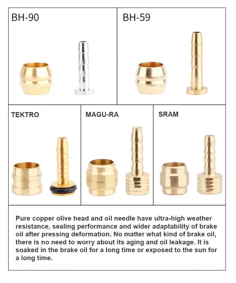 Чистая медь оливковая головка велосипеда и масляная игла, с хорошей герметизацией и устойчивостью к деформации, широко подходит для BH59, BH90, SRAM, MAGURA, TEKERO и других брендов различных моделей
