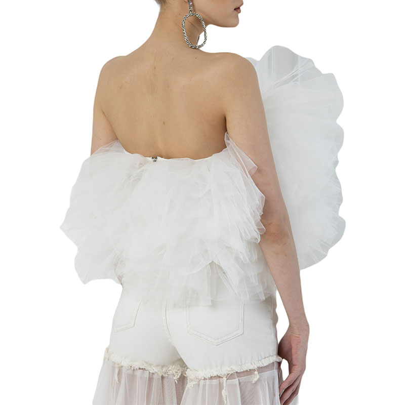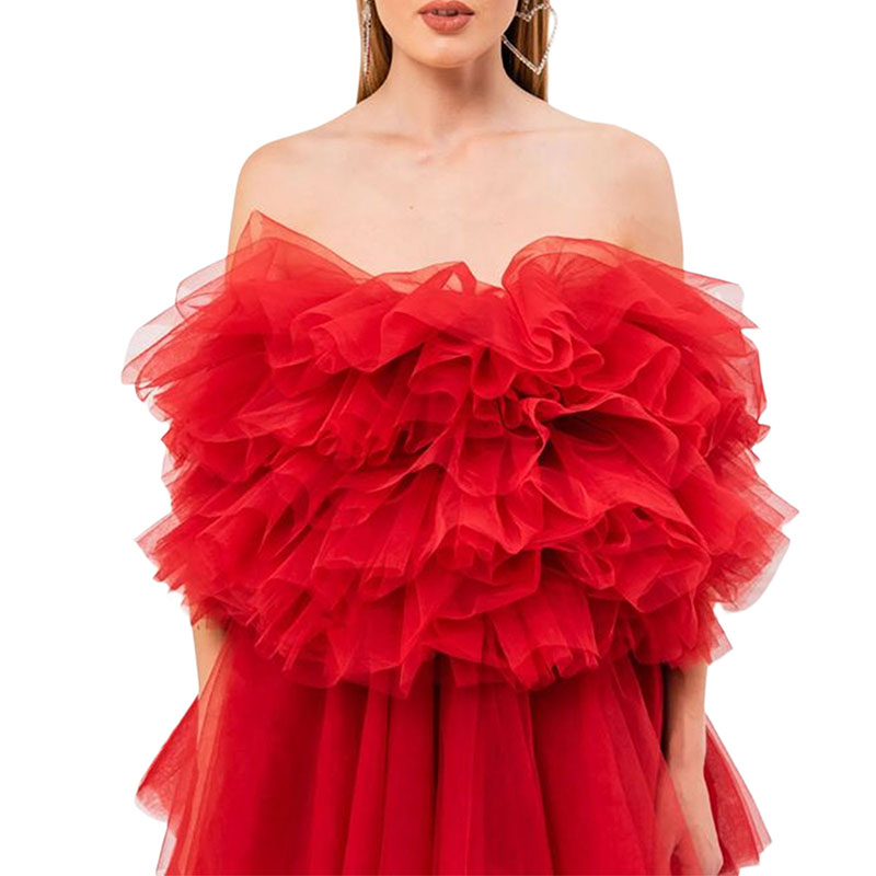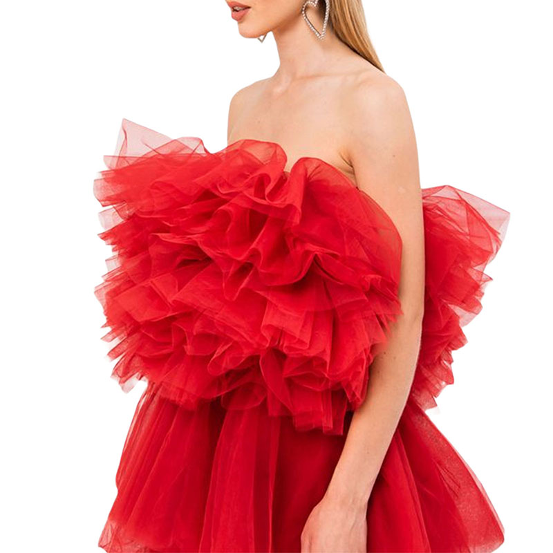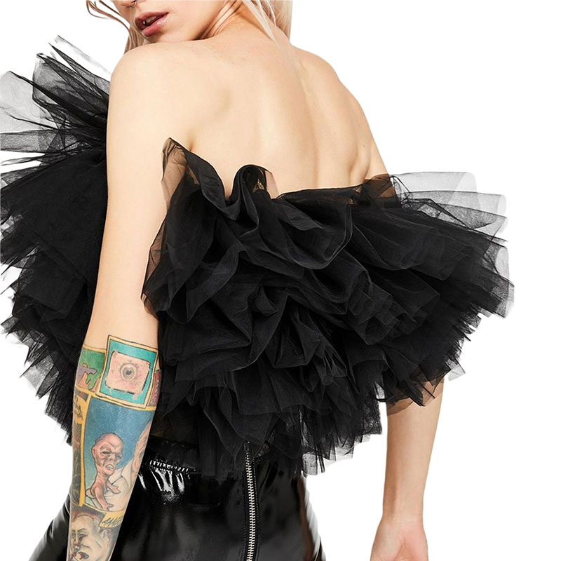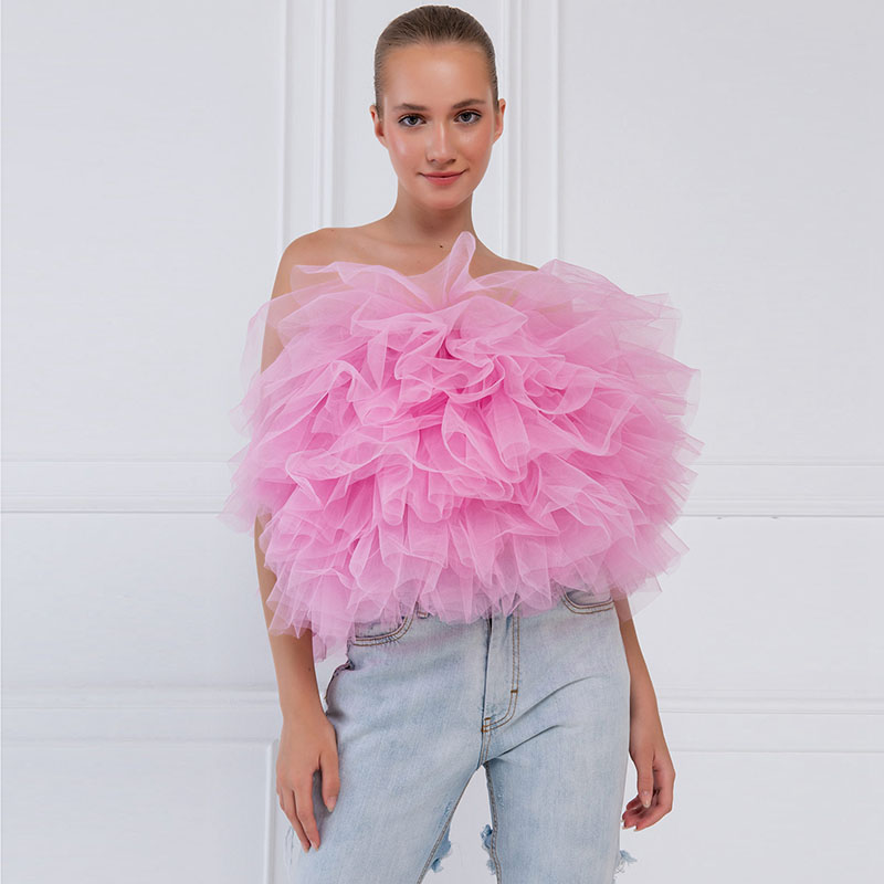 Топ без рукавов с вырезом лодочкой, пышные топы из тюля, многослойный дизайн, сплошной цвет, простой и стильный.