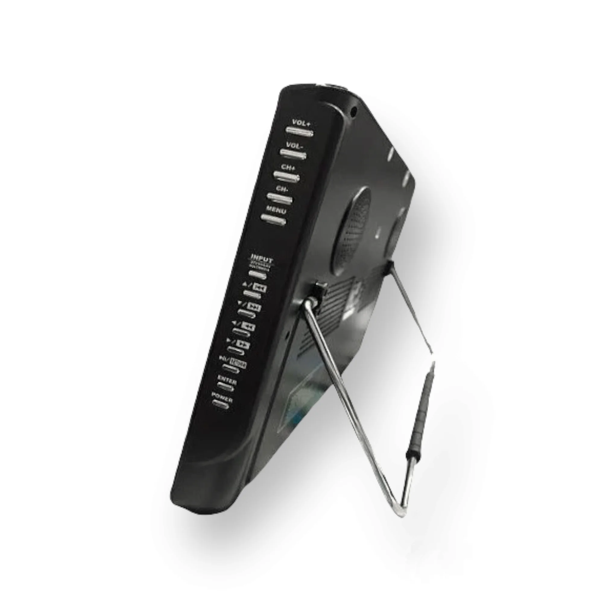 Портативный телевизор EP-124T марки Eplutus предназначен для просмотра телепередач в доме и за его пределами. Он принимает сигнал в аналоговом и цифровом формате, поддерживает популярные форматы видео и аудио. Благодаря комплекту встроенных разъемов и картридеру гаджет можно использовать для просмотра фотоснимков и фильмов, подключения к игровой приставке в качестве монитора.