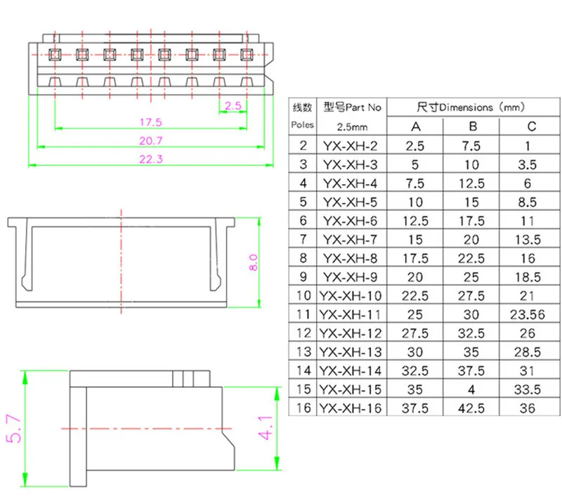 Спецификация кабеля:SH 1,0 мм: 1517 # 28AWG, JST 1,25 мм: 1517 # 28AWG, ZH 1,5 мм: 1517 # 28AWG, PH 2,0 мм: 1007 # 26AWG, XH 2,54 мм: 1007 # 26AWG.