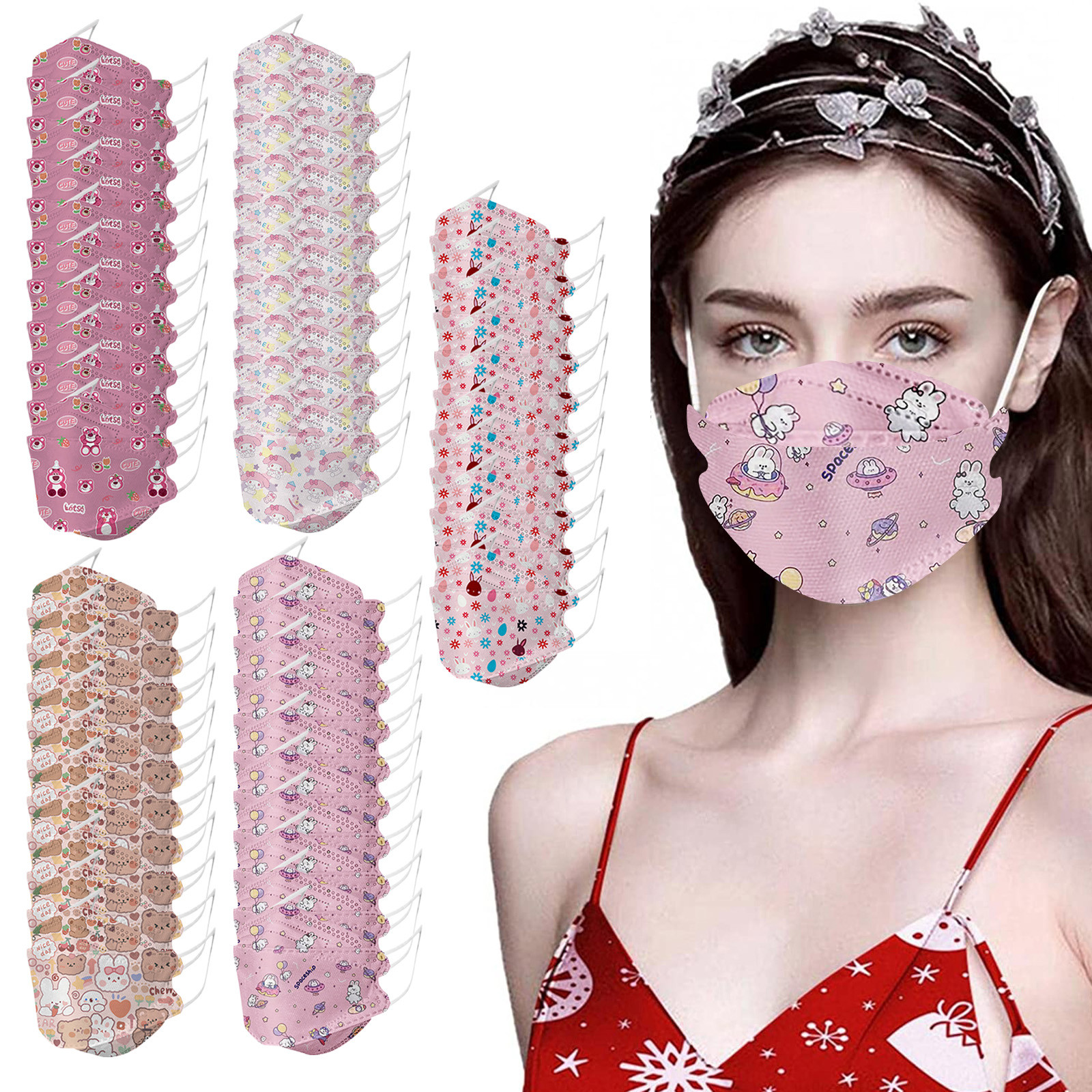 Одноразовые дыхательные аппараты для взрослых; Масок для лица с 3D разных моделей, 4 слойные женская обувь с милым рисунком, дышащая маска для лица
