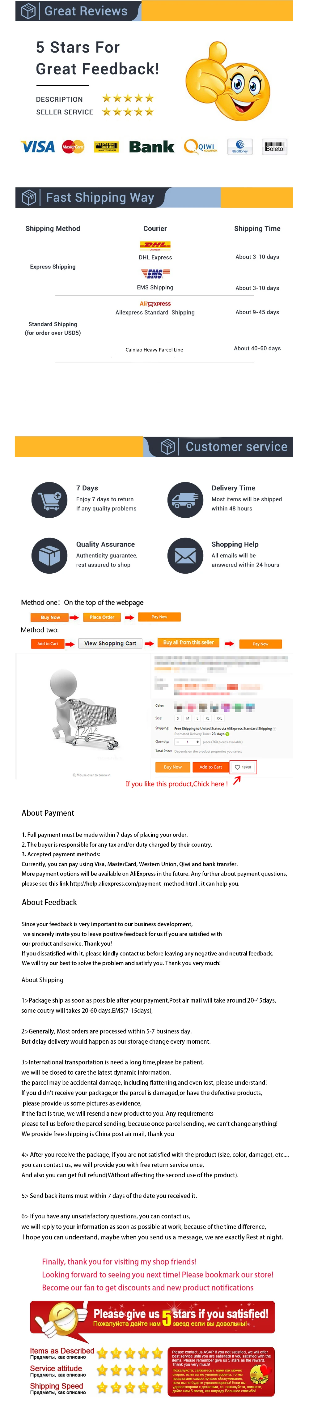 1. Пожалуйста, подтвердите сумму таможенных пошлин, взимаемых вашей местной таможней на продукцию перед покупкой. Покупатель должен оплатить тариф. Если вы не можете принять это, пожалуйста, не размещайте заказ, спасибо!