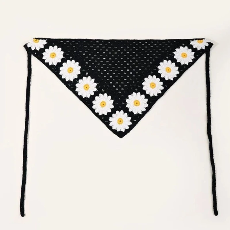 Женский вязаный тюрбан с ромашками, винтажный платок для волос в стиле бохо, головной платок для девушек и девушек, подарок M6CD
