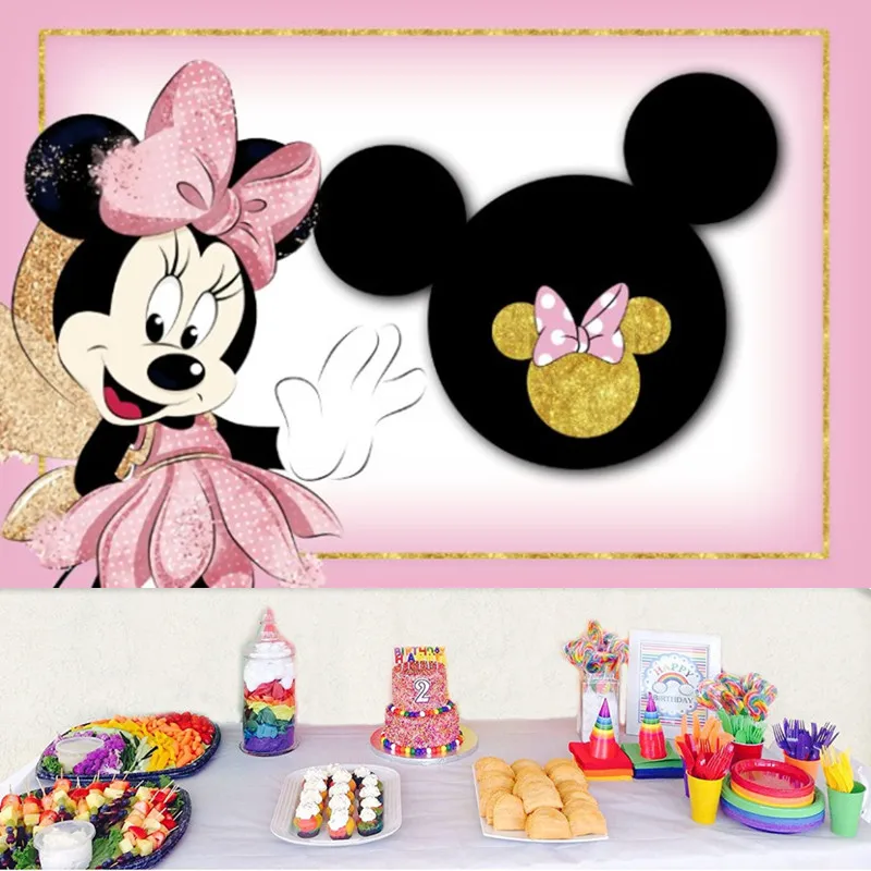 НастраиваемыйMinnieMouseВечерние виниловые фоны для фотосъемки новорожденных с изображением цветов радуги и дня рождения для студийной фотосъемки телефонный реквизит