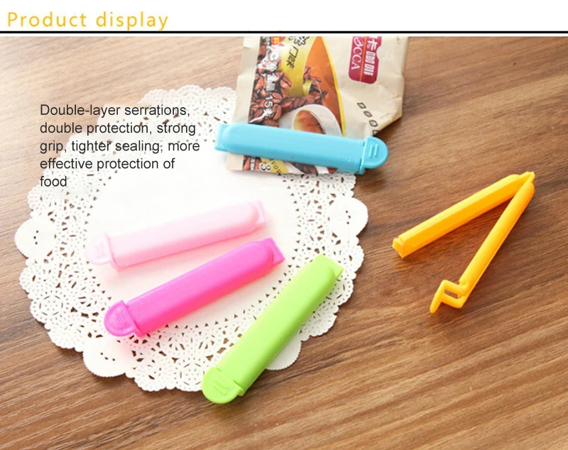 Этот уплотнительный зажим очень хорошо уплотняет, и он может плотно зафиксировать свежесть пищи, не складывая, мешок при герметизации.