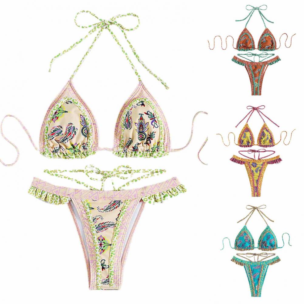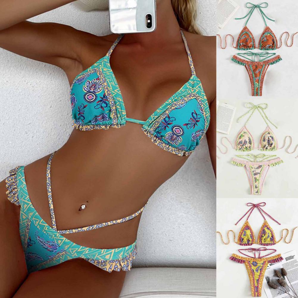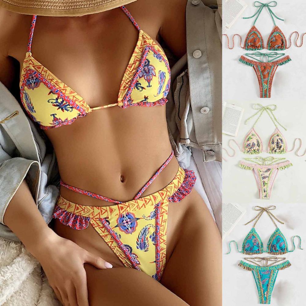 2 шт./компл. набор купальных костюмов с красочным принтом в богемном стиле, дышащий женский купальник для плавания