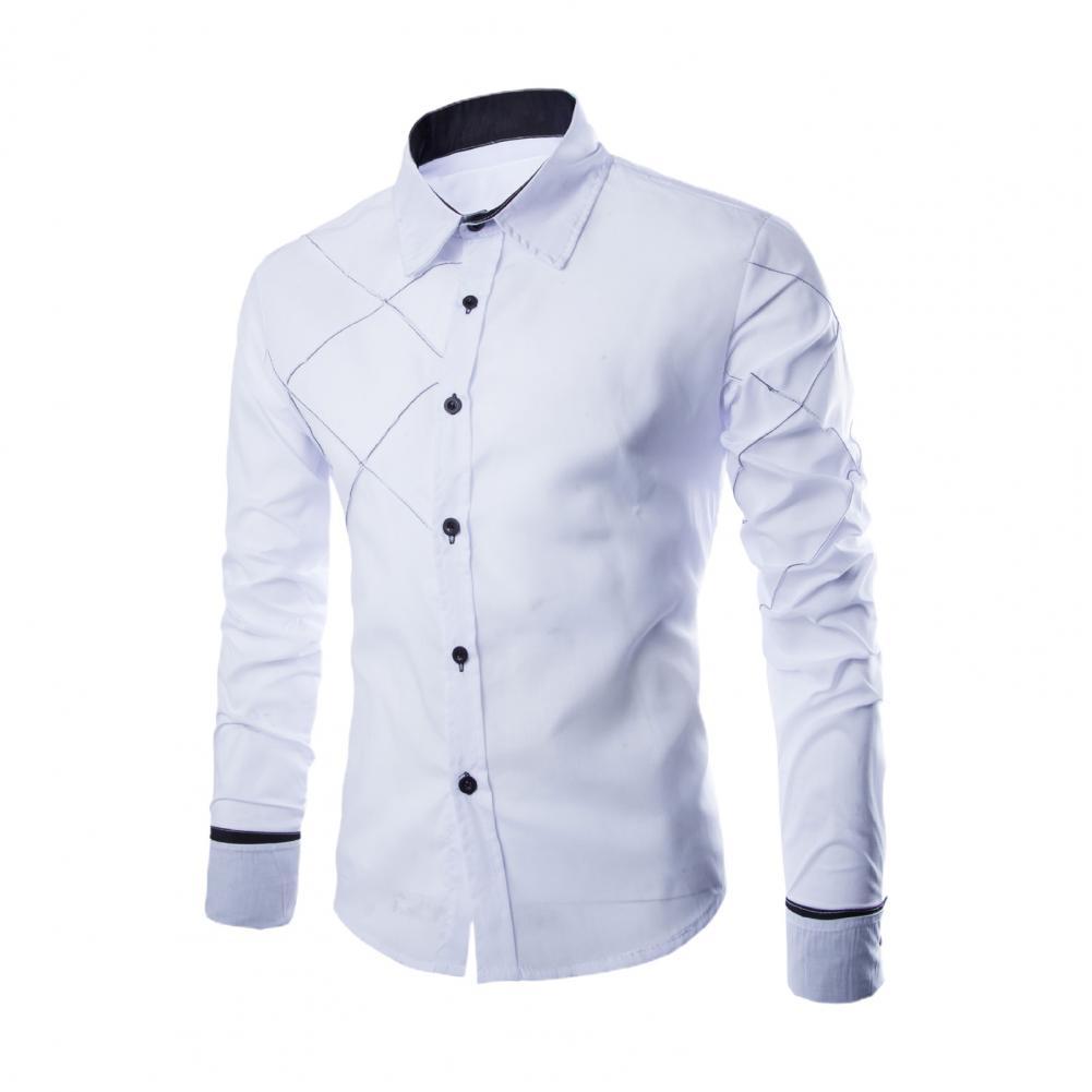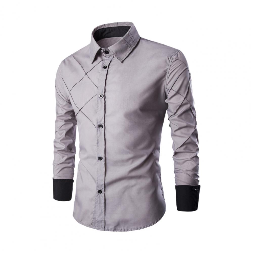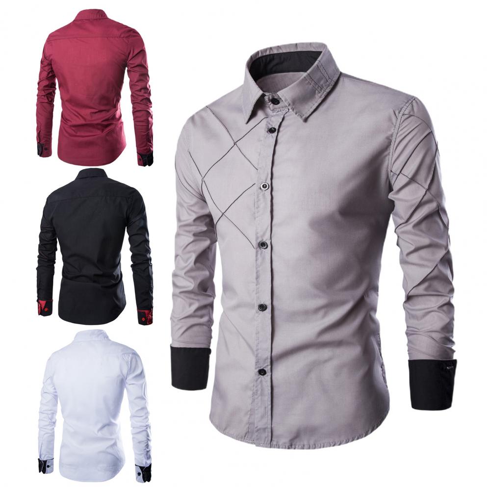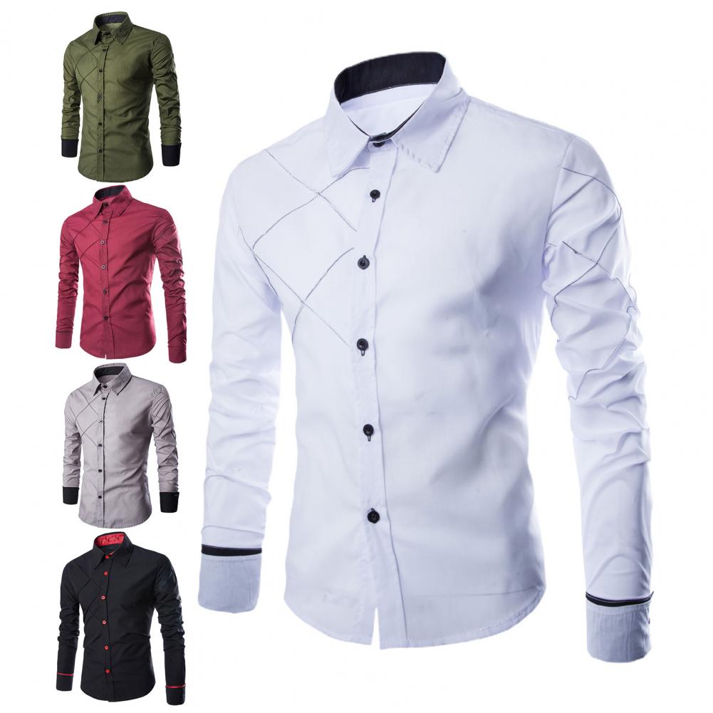 Мужская рубашка с цветными блоками, клетчатая уличная облегающая деловая рубашка контрастного цвета для офиса
