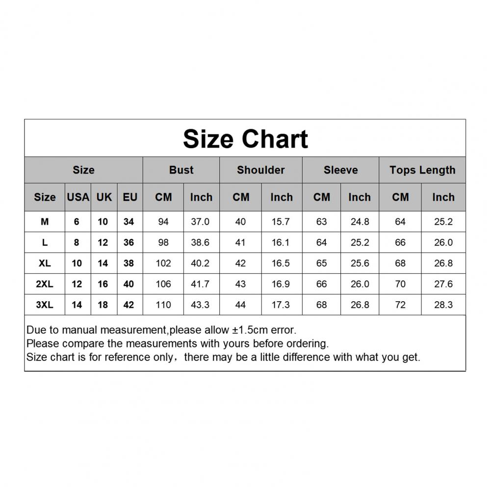 Размеры: 3XL, плечо: 44 см/17,3 ", бюст: 110 см/43,3", Длина: 72 см/28,3 ", рукав: 68 см/26,8" (прибл.)