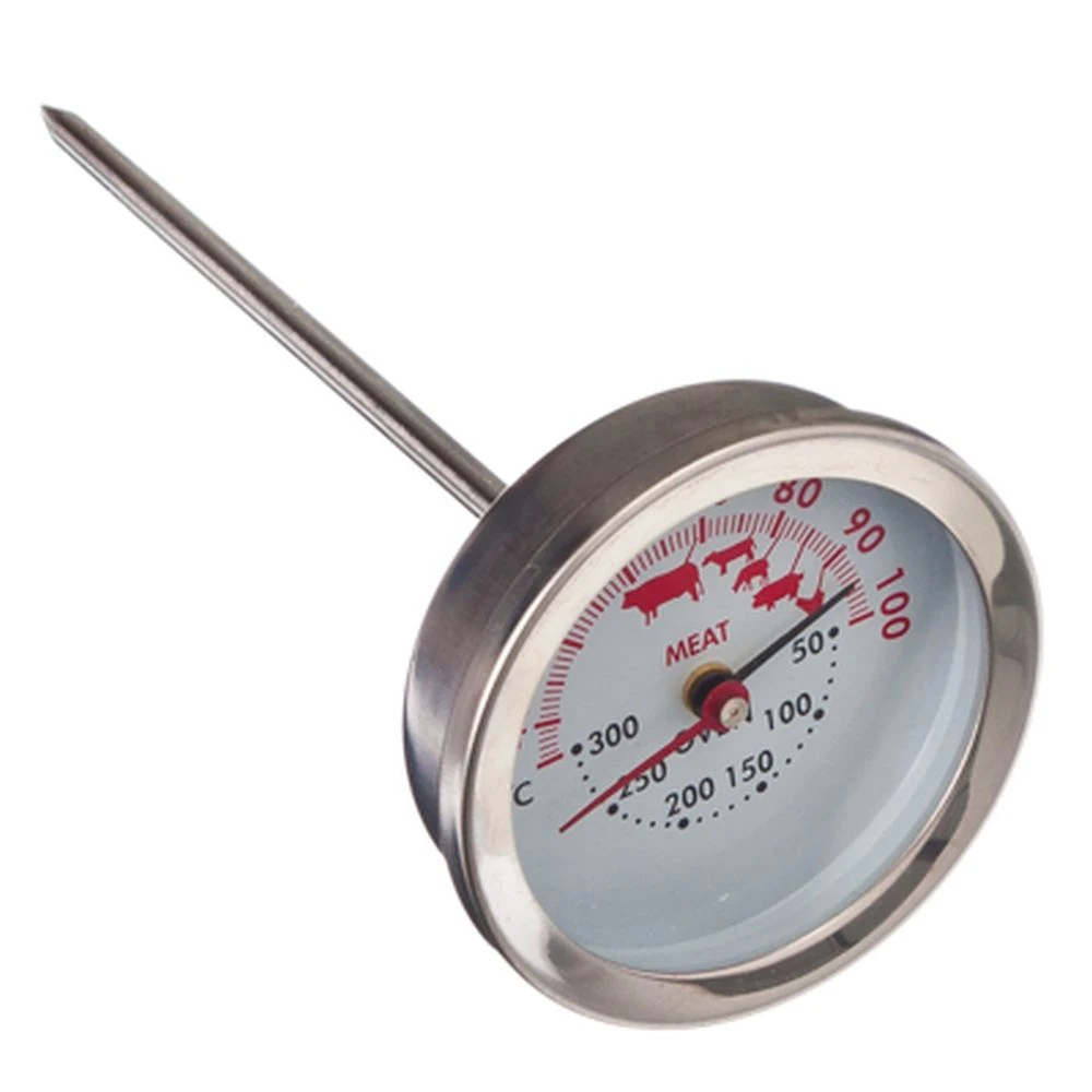 Шкала показывает от 0 до 300 градусов Цельсия. Выполнен термометр из нержавеющей стали.