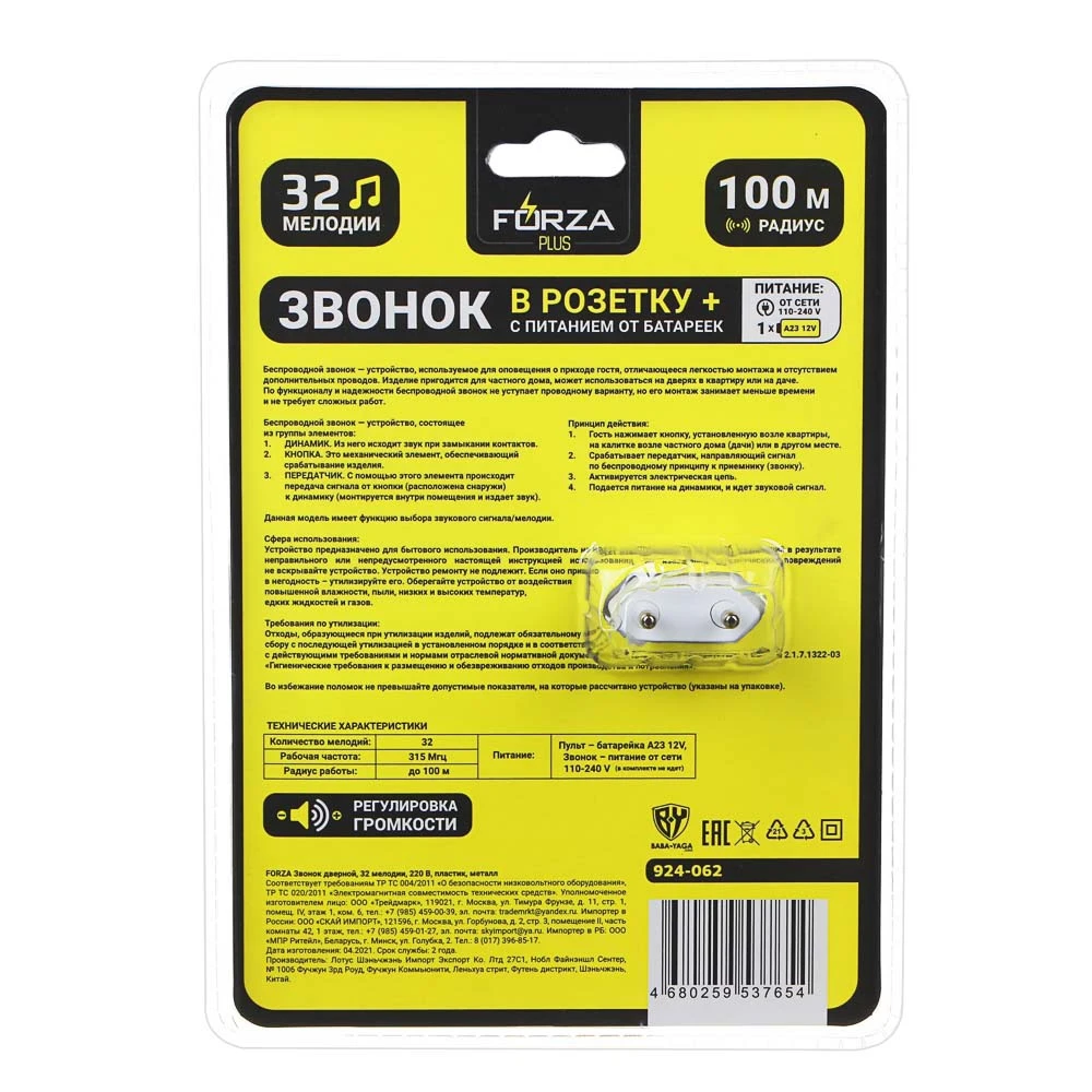 Тип питания 3*AAA Мелодии 32 мелодии Материал Пластик, металл