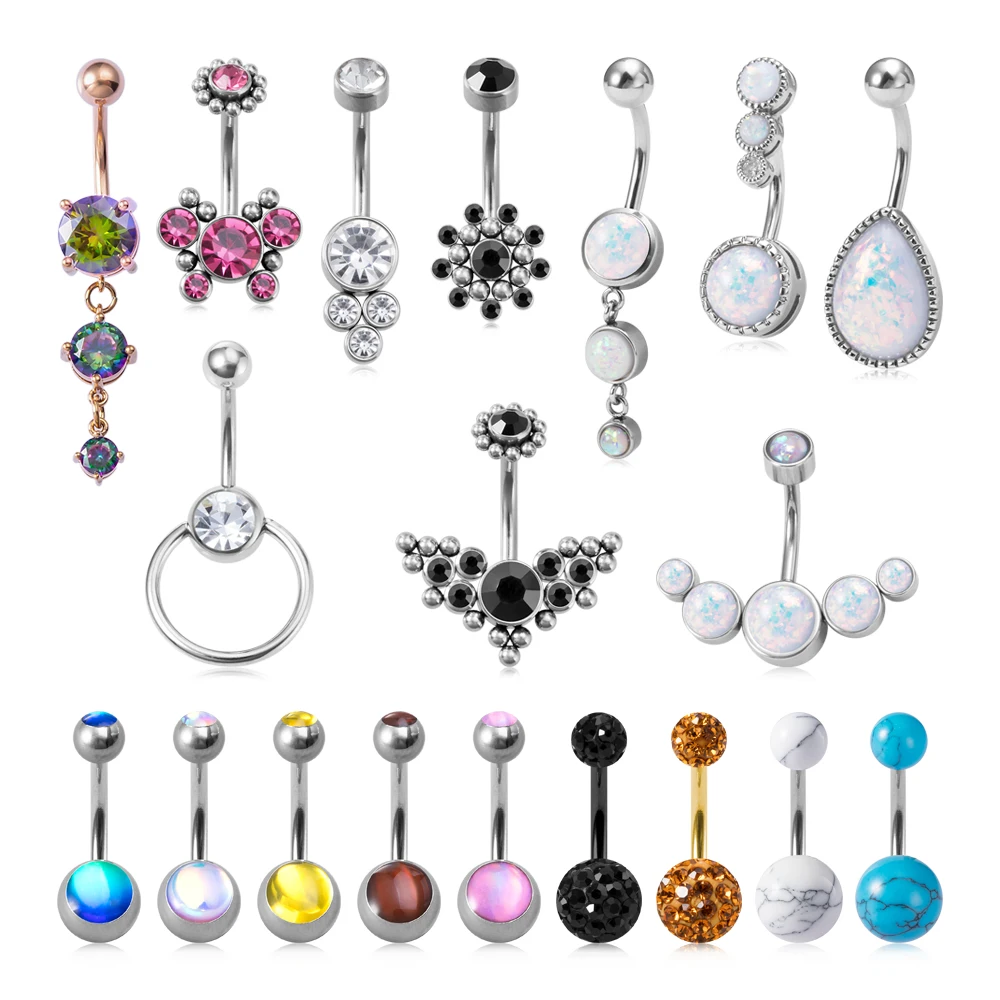 1 шт., шикарные кольца с фианитами для пупка, нержавеющая сталь, Пирсинг живота для женщин, сексуальный пупок, пирсинг, шпильки, модные ювелирные изделия, 14 г