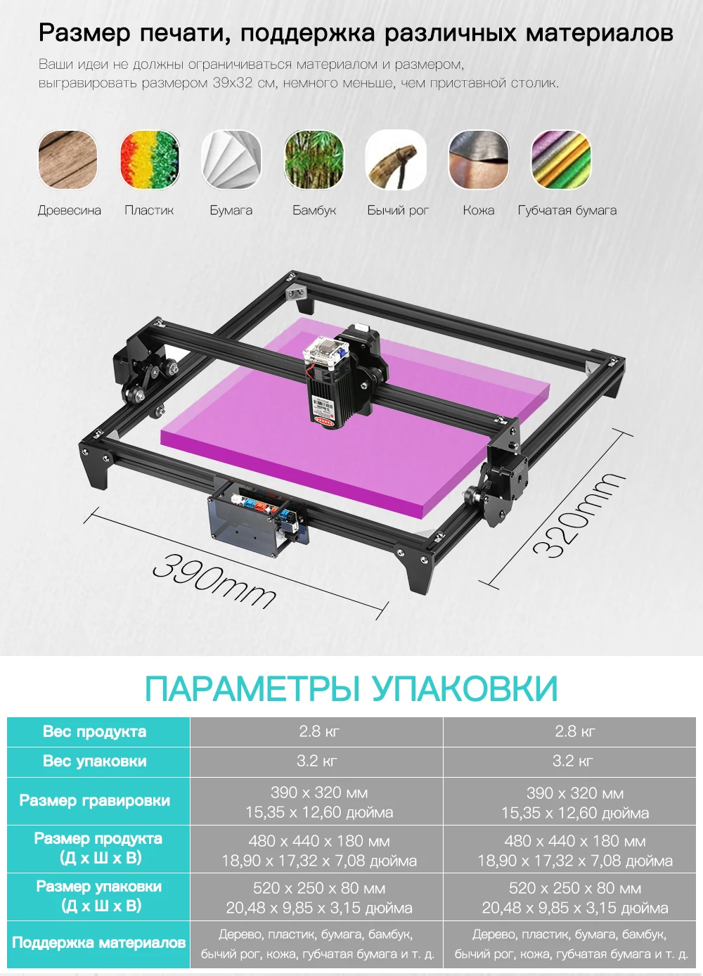 Размер Гравировки: 39*32 см/15,35*12,6 дюйма