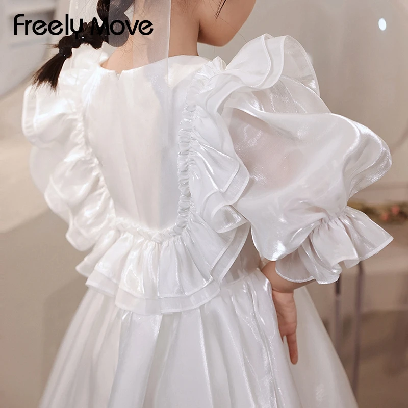 Наименование товара: свободное платье для девочек; Летняя модная Милая Детская одежда до колена с пышными рукавами и белыми оборками; 2022 платье для девочек