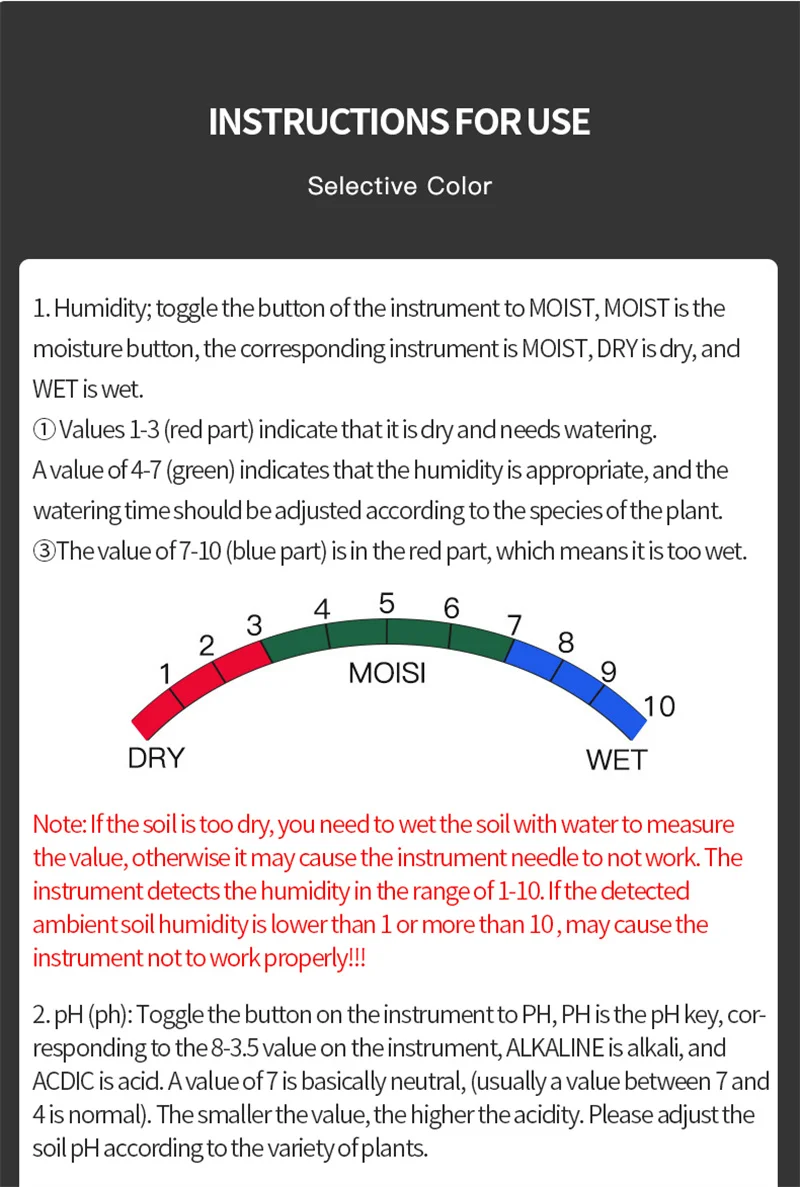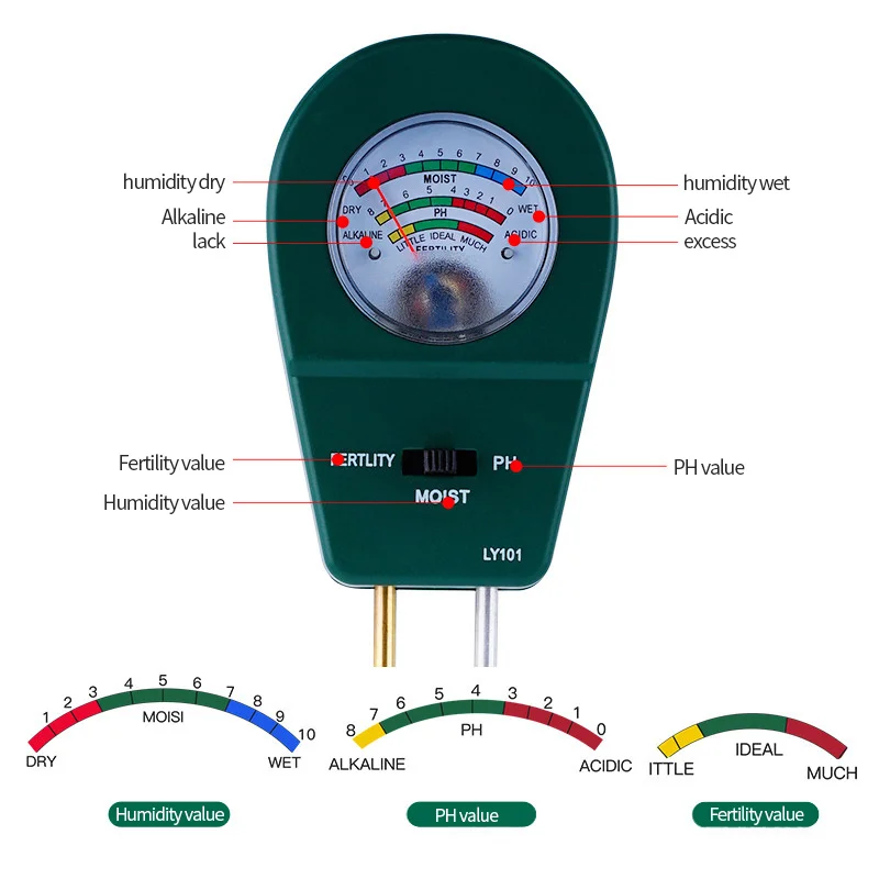 Диапазон измерения: pH, влажность, фертильность