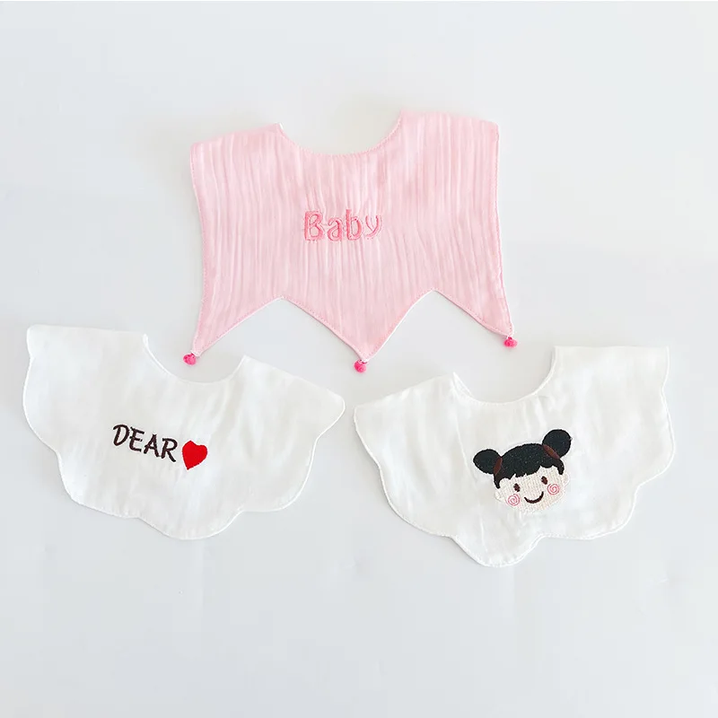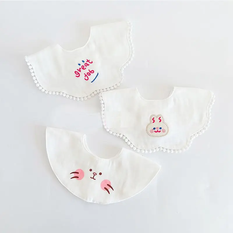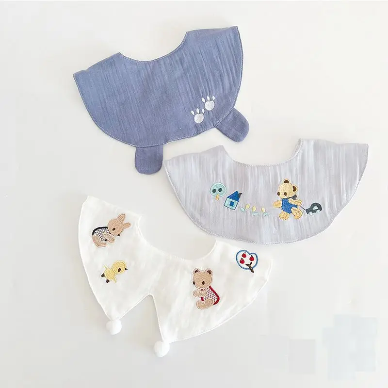 Комплект из 3 предметов, корейский стиль, хлопковые Слюнявчики для новорожденных, милые Слюнявчики с вышивкой и мультяшным принтом, Слюнявчики для мальчиков и девочек, полотенца для ухода за детьми
