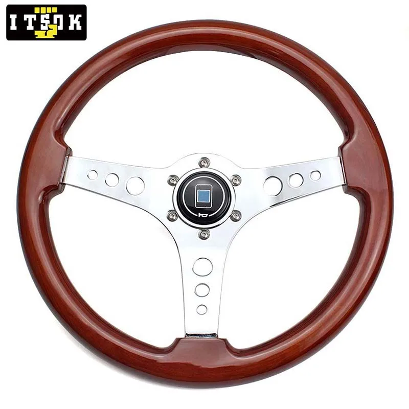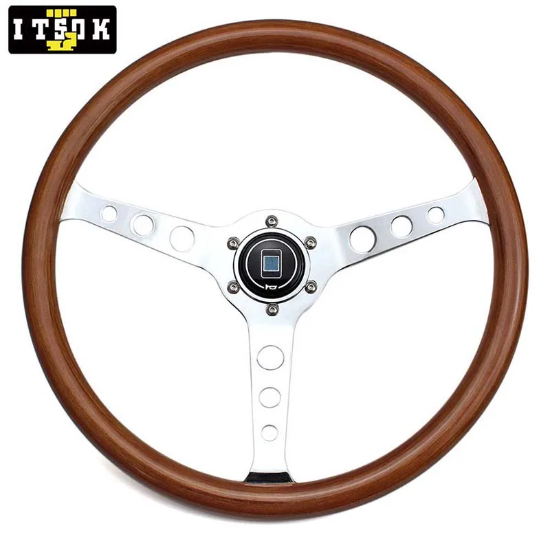 ND твердое дерево руль 15 дюймов 380 мм настоящая деревянная универсальная Классическая винтажная Серебряная Хромовая спица плоская тарелка гоночный Volante