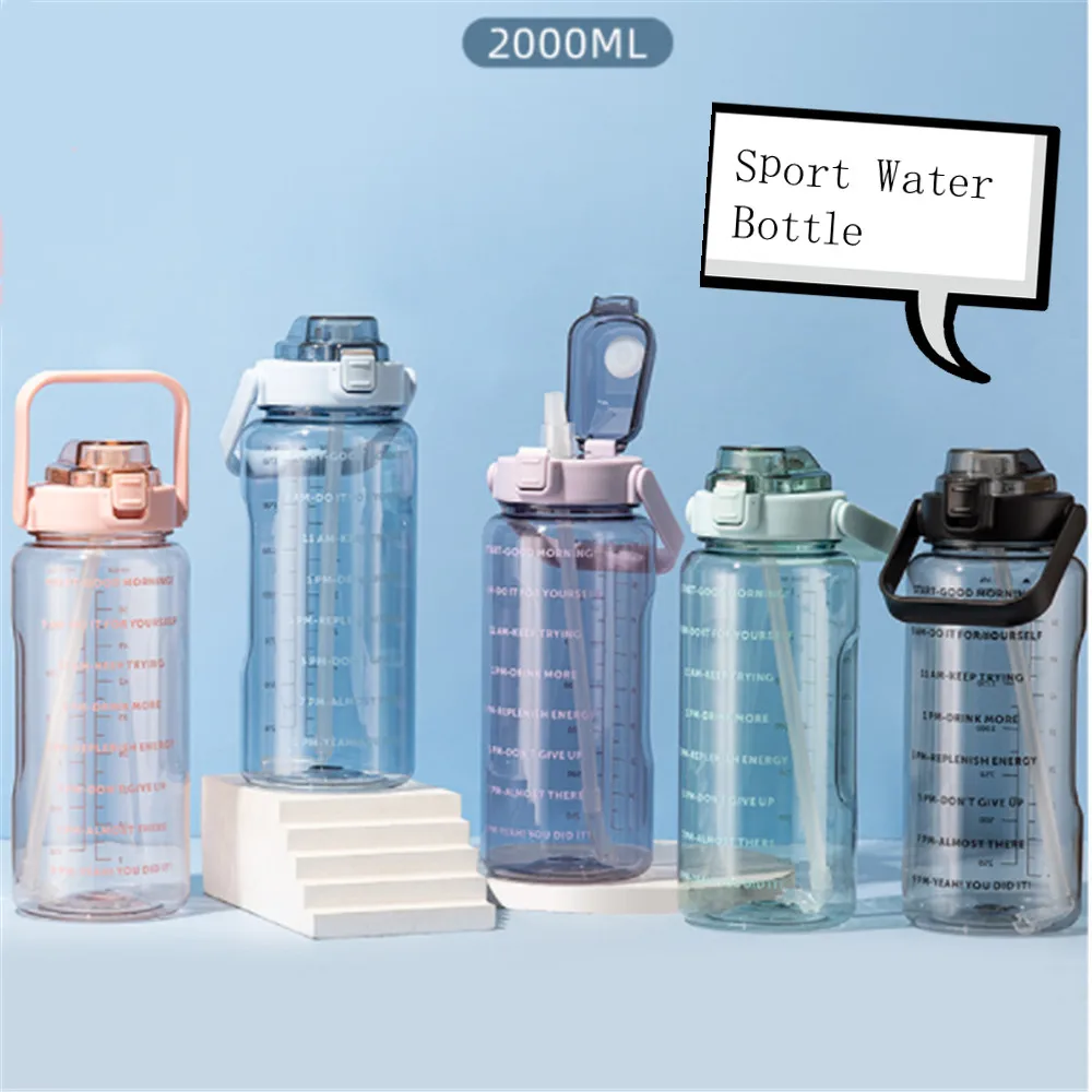 Бутылка для воды весы 2 литра Тыква 2000 мл спортивная чашка с соломинкой мотивационные Летние Фитнес большой чайник пластик Бесплатная доставка пункт