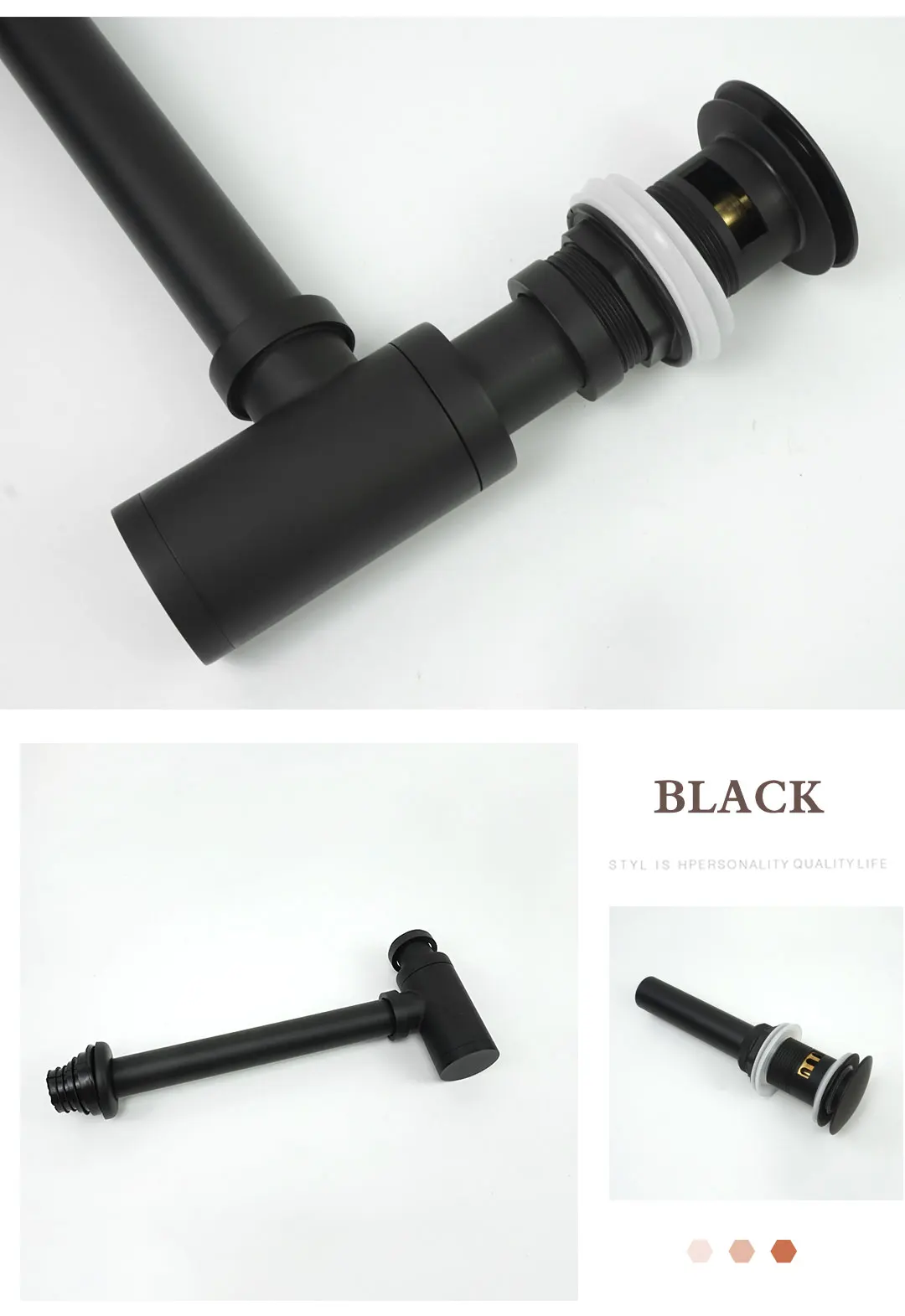 Латунная круглая бутылочная сифонная ловушка для ванной комнаты, умывальник, стопор для отходов, сливная п-ловушка, раковина для умывальника, всплывающий слив, золотой, черный, серый