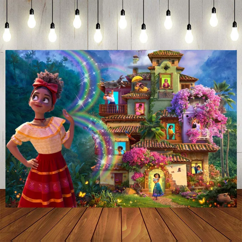 Вечерние фоны Disney Encanto для фотосъемки с темой Mirabel, декорация в виде зоны для фотосъемки детей, для девочек, вечерние фоны для празднования дня рождения