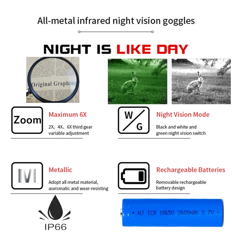 Подходит для ночной охоты, кемпинга, рыбалки, птиц, просмотра, скаутинга,