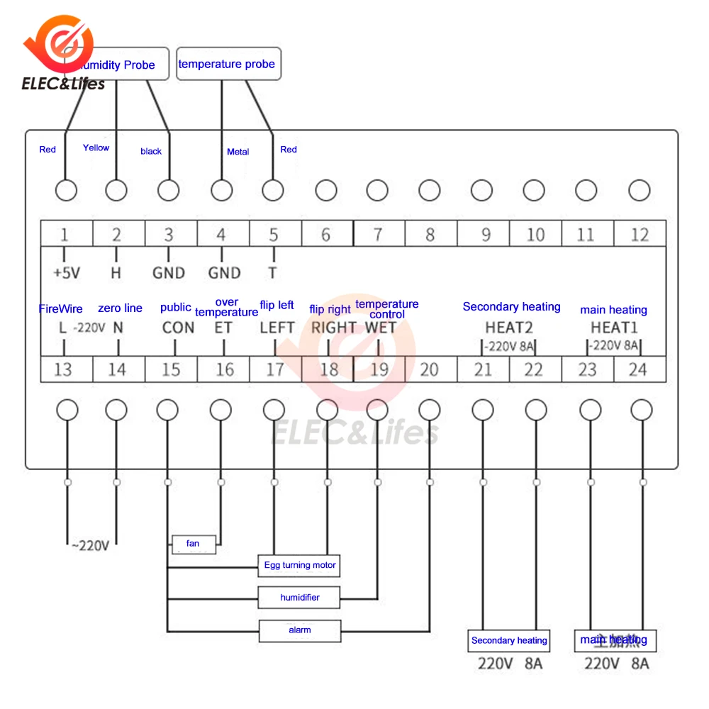 Выходной ток: контроль температуры, при температуре ≤ 8A/AC22PV, перегрев, поворот яиц, поворот влево, поворот вправо