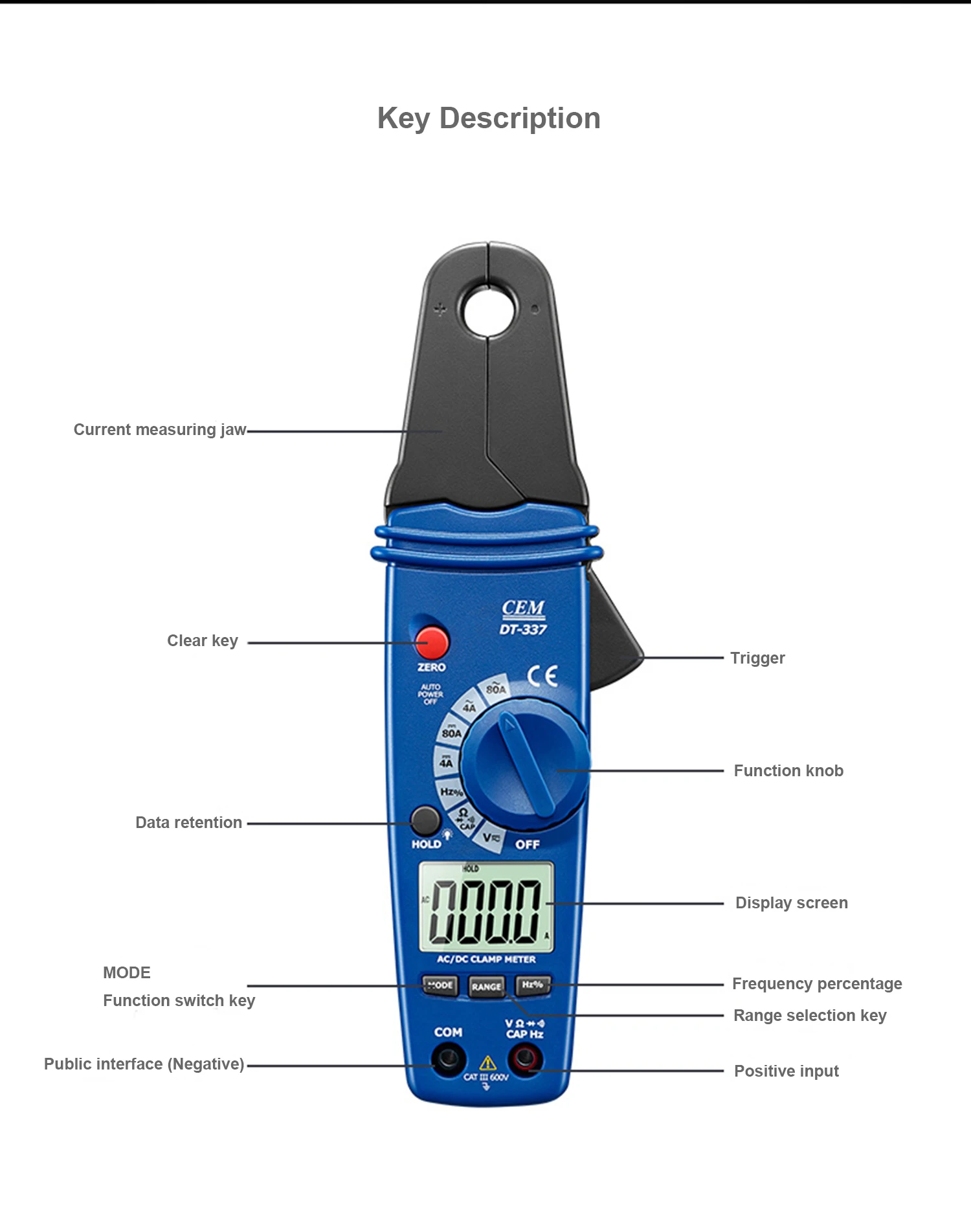 Мини AC/DC клещиНовый DT-339 предназначен для проверки наличия тока нагрузки, напряжения и сопротивления и т. д. маленькие тела и челюсти идеально сидят в руке и большой дисплей с подсветкой легко читается. Диапазон тестового свинца mA с высоким разрешением 1mA для HVAC и приложений управления процессом Удержание данных замораживание отображаемого значения Автоматическое отключение питанияТестер цифрового зажима для измерения тока переменного/постоянного токаОбеспечивает широкий диапазон измерений от очень маленького до большого токаРазработан по стандарту безопасности IEC 61010-2-032: CAT III 600V и степень загрязнения 2Автоматическое выключение и Функция удержания данныхОсобенности