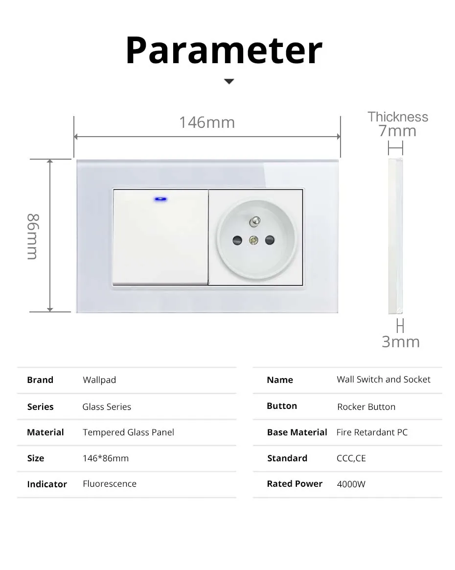 Wallpad белая панель из закаленного стекла настенный светильник светодиодный индикатор диммер USB EU розетка 5 6 7 8 Gang 2 Way Reset 146*86 мм