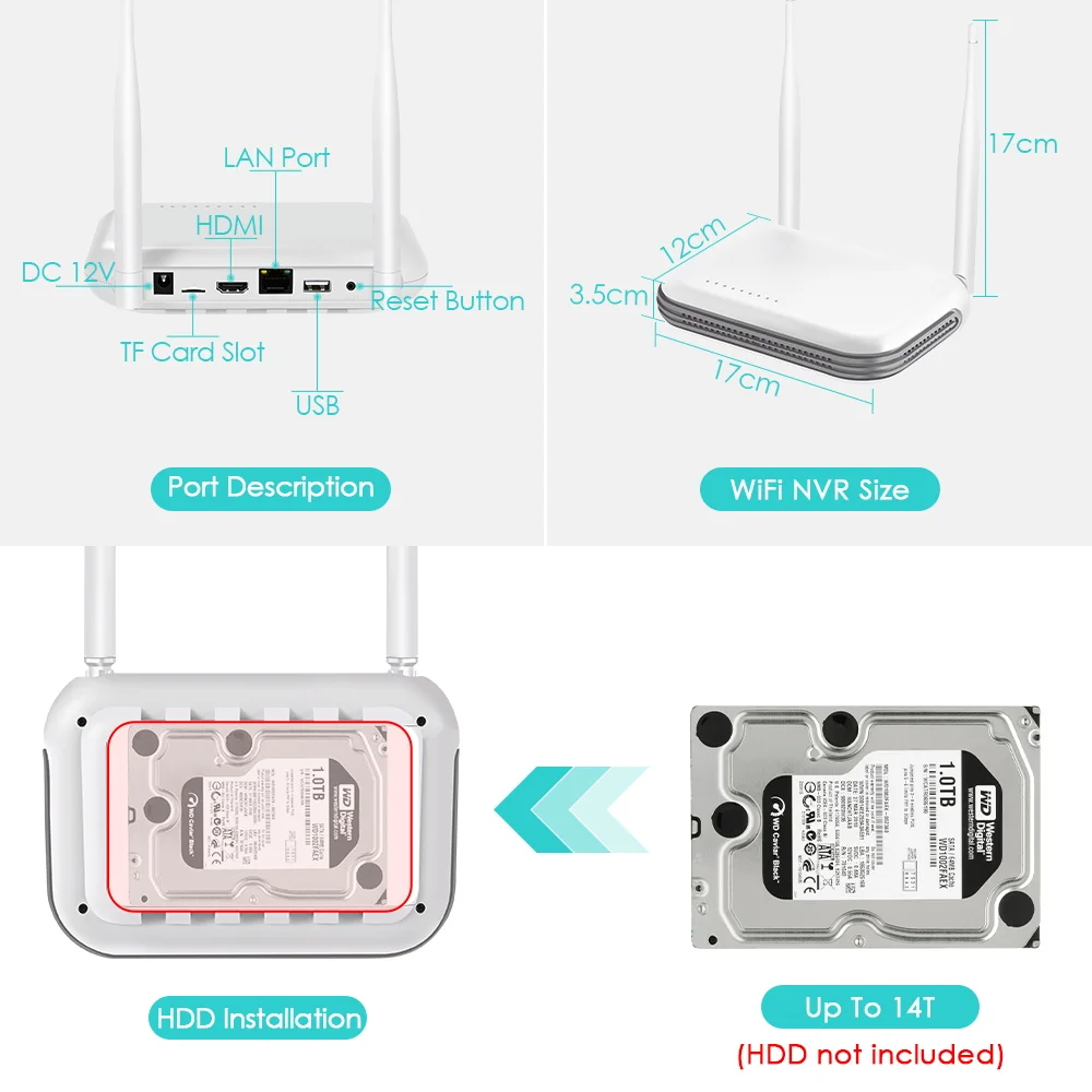 Мини NVR встроенный слот карты Micro SD и SATA порт, максимальная поддержка 128 Гб Micro SD карты и до 4 ТБ HDD (опционально во время покупки); И он также может поддерживать Облачное хранилище!