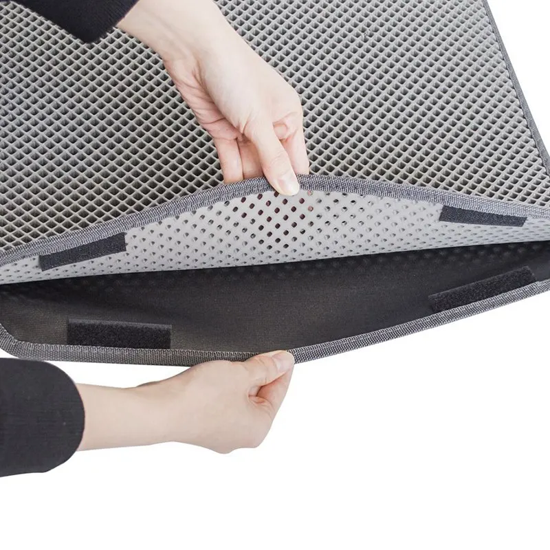 5. Коврик для домашних животных изготовлен из материала EVA с высокой эластичностью. Верхняя часть коврика позволяет кошачьему туалету легко проходить, а нижняя часть является водонепроницаемым материалом, поэтому песок для кошачьего туалета или другие отходы могут быть собраны на этом слое.