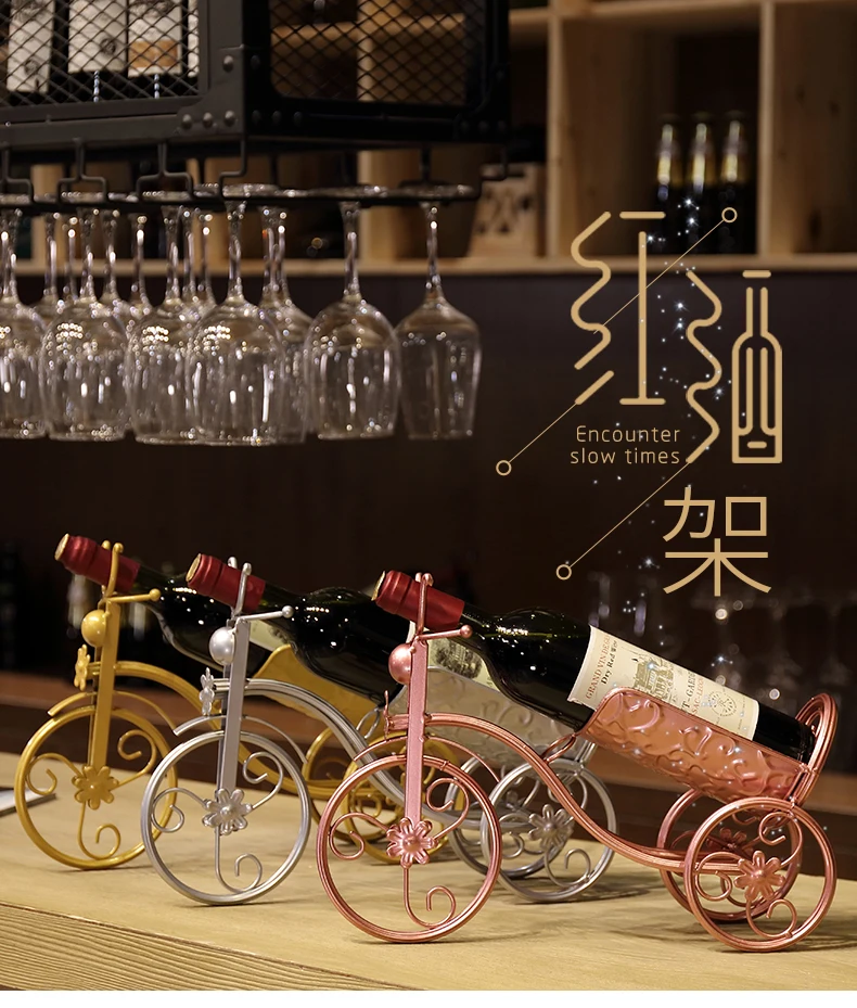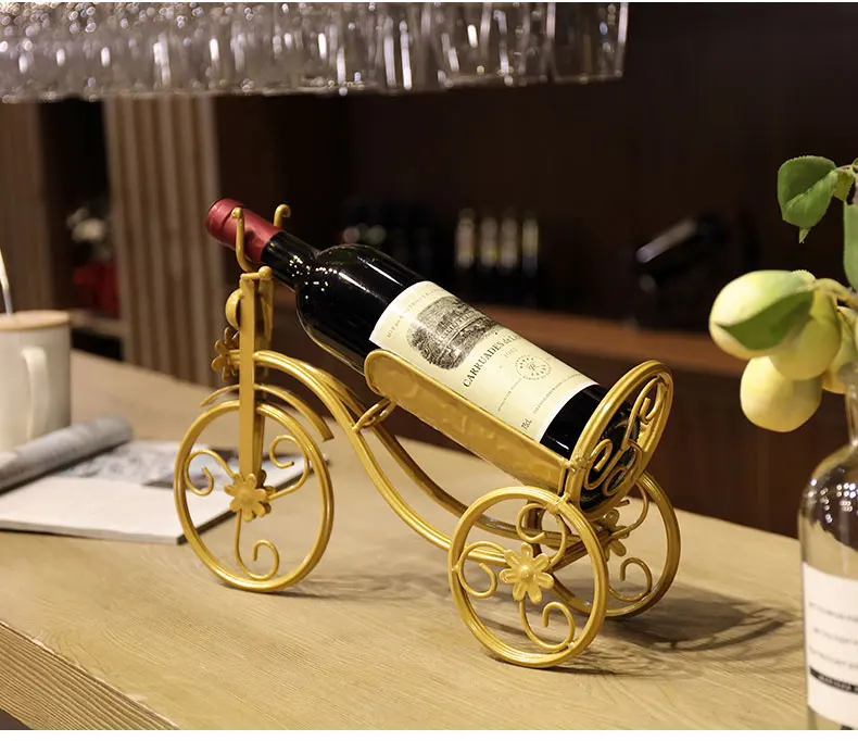 Ретро кованого железа трехколесный велосипед красное вино стойки украшения творческий дом винный шкаф украшение хранение винных бутылок полка держатель