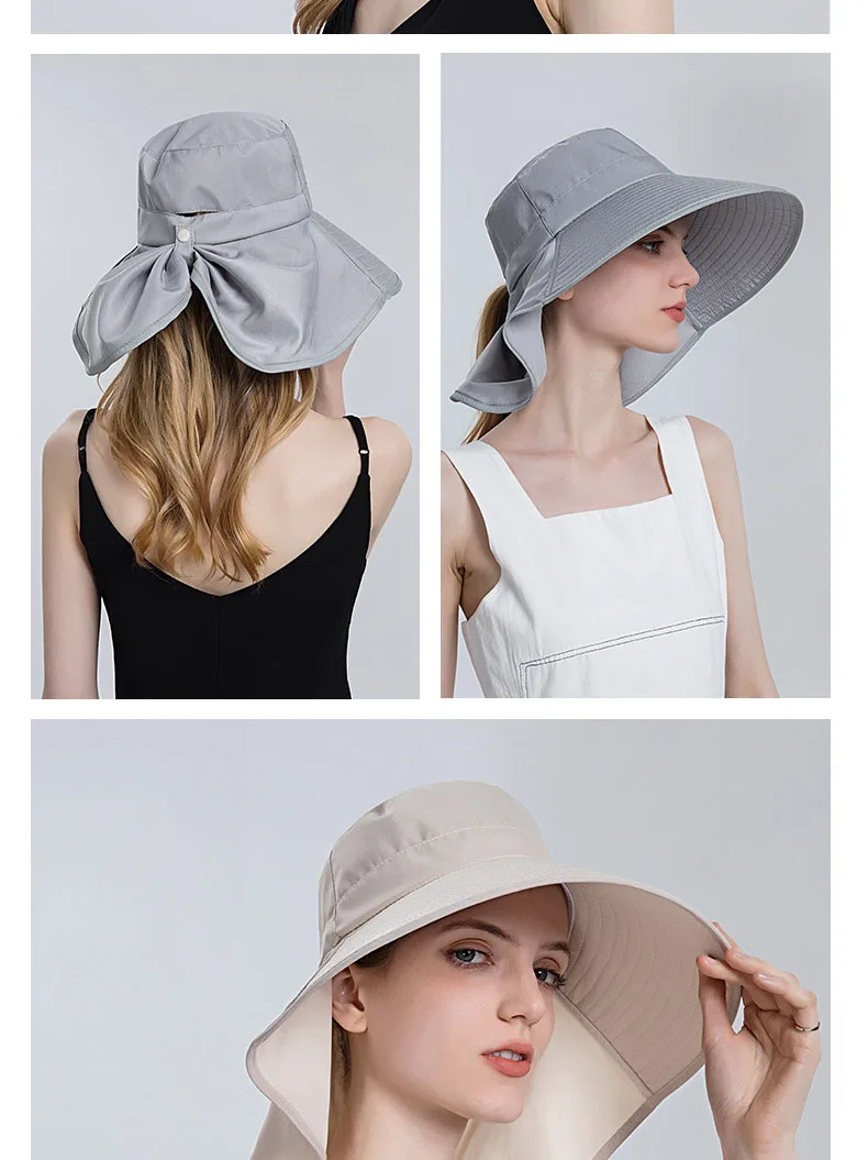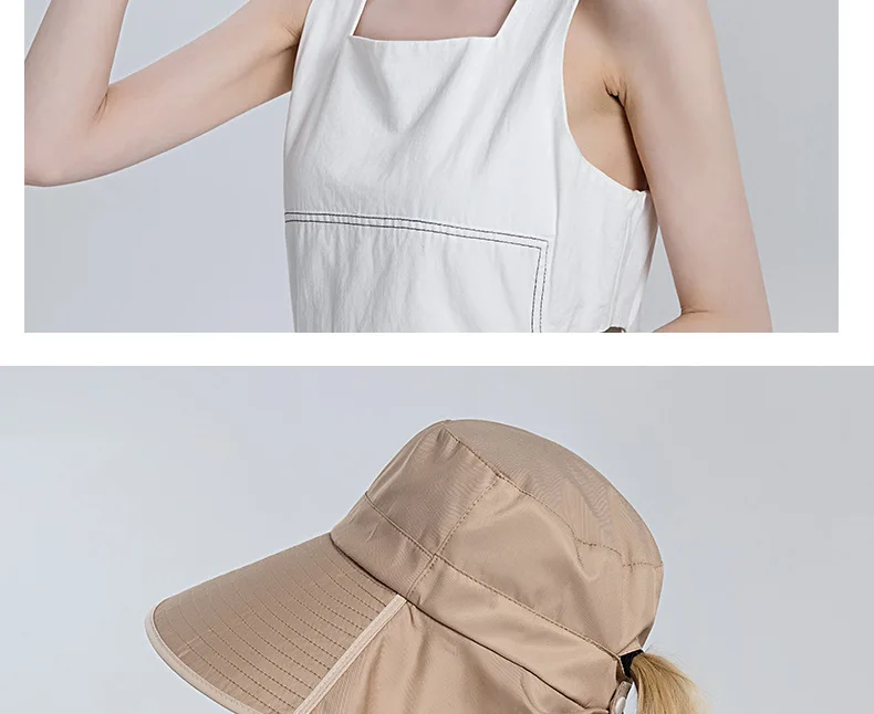 Женский модный конский хвостик, Панама с клапаном на шею, летняя Солнцезащитная шляпа с защитой от ультрафиолета для женщин, для улицы, с широкими полями, Пляжные шапки